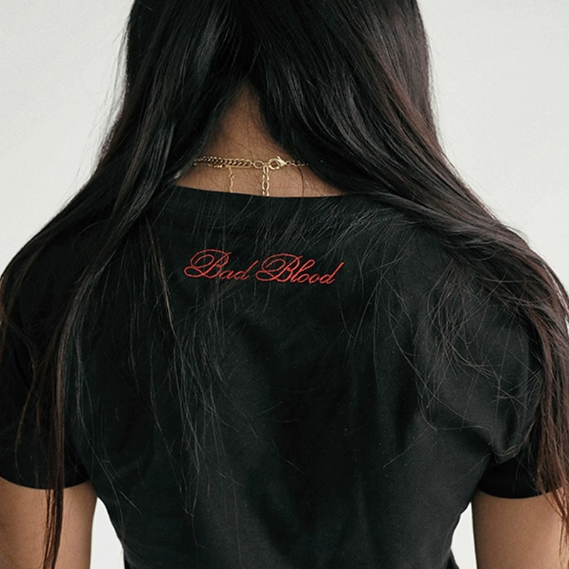 한국 badblood BCAC 시리즈 미국 스타일 뜨거운 소녀 짧은 티셔츠 여성 캐주얼 스포츠 틈새 디자인 센스 탑