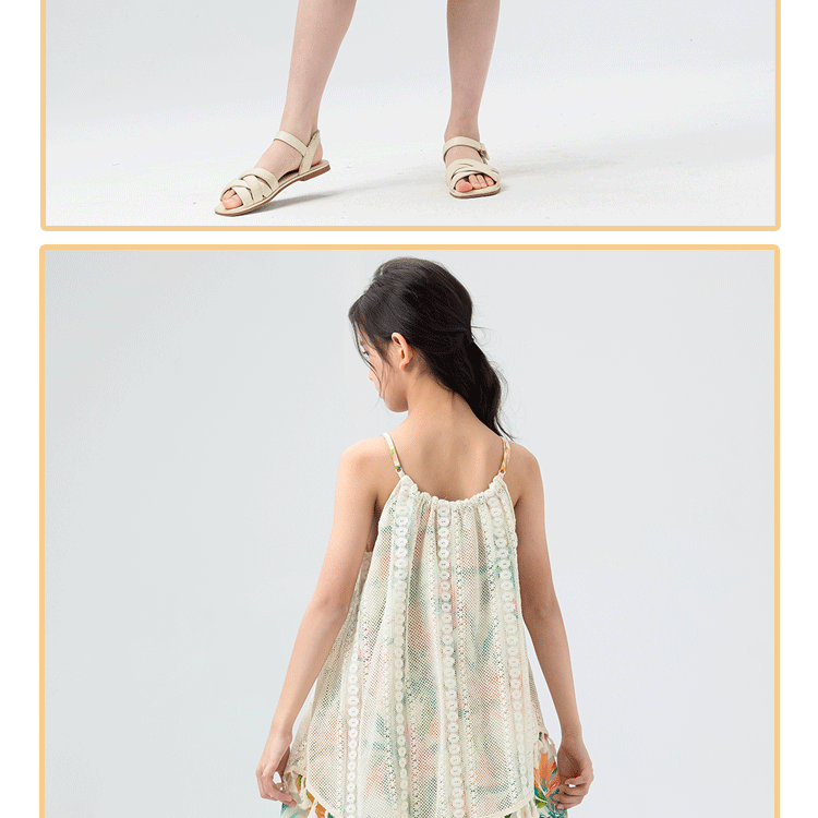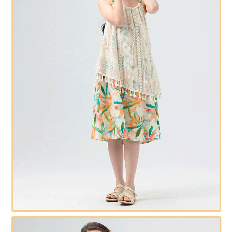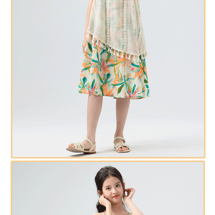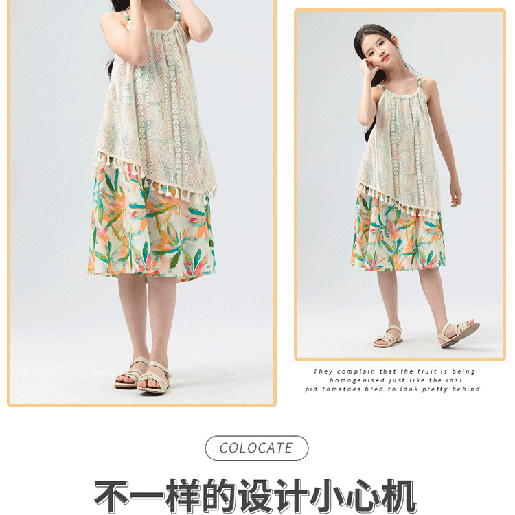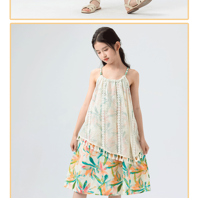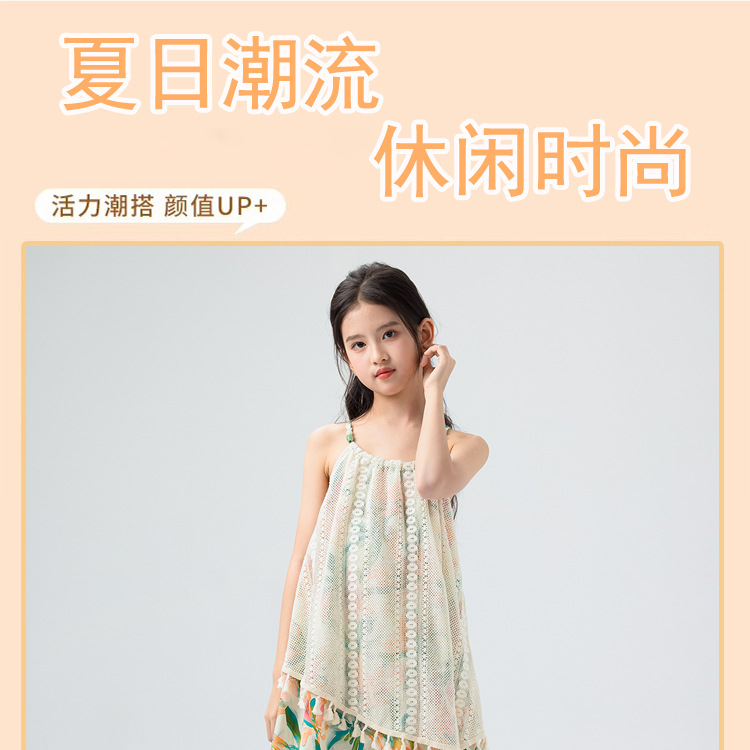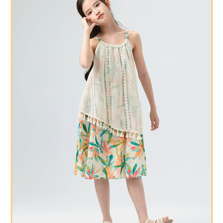 여자 서스펜더 드레스 여름 새로운 유행 어린이 가짜 투피스 중공 스커트 여름 드레스 여자 비치 드레스 유행