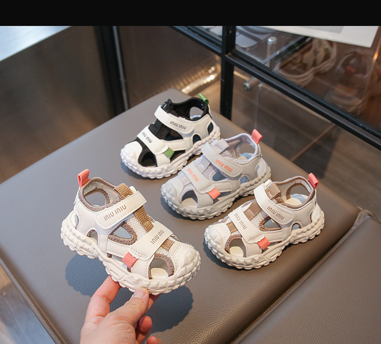 소년의 통기성 메쉬 스포츠 샌들 걸스 프레임 슈즈 2025 새로운 킥 방지 Baotou 비치 슈즈