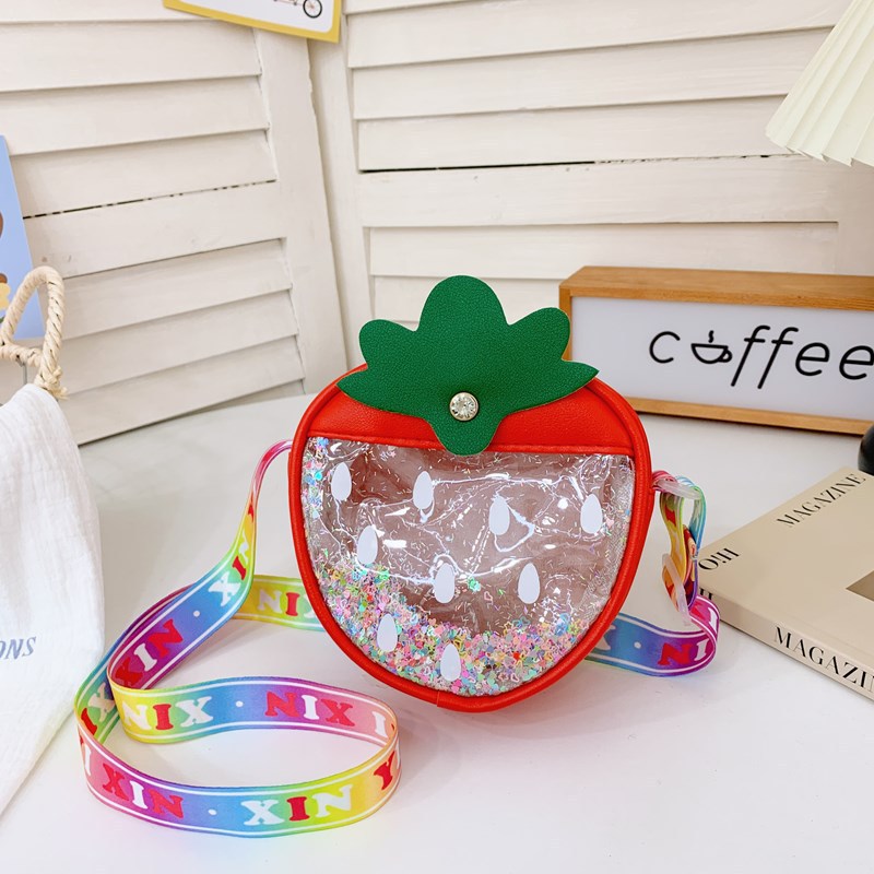 투명 소녀 딸기 가방 여름 2025 새로운 창조적 인 귀여운 소녀 외출 어깨 메신저 가방 동전 지갑