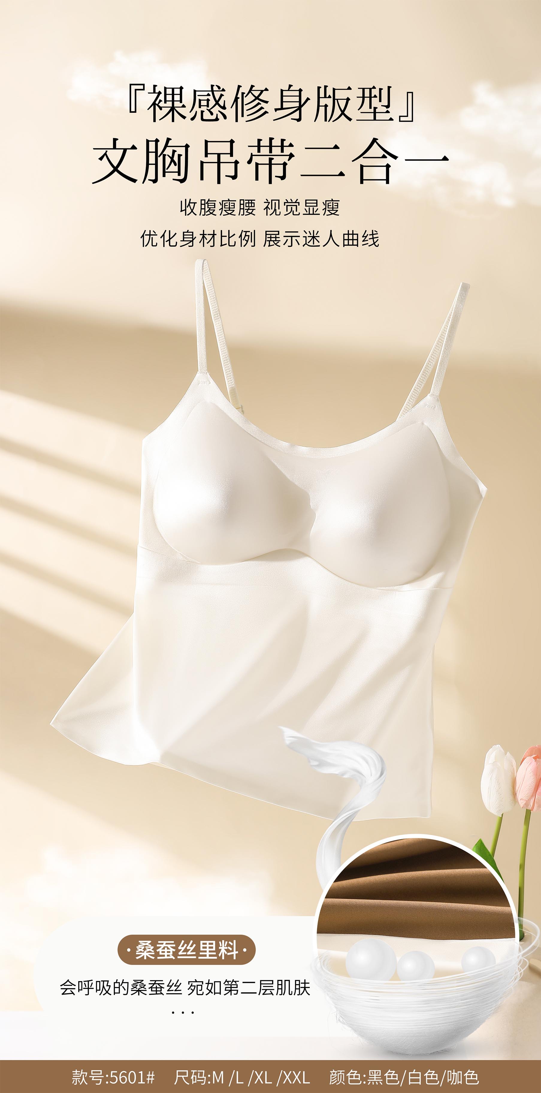 오리지널 라이브 새틴 뽕나무 실크 Traceless with Chest Pad Anti-running Camisole Outer Wear bra 플러스 사이즈 아름다운 등