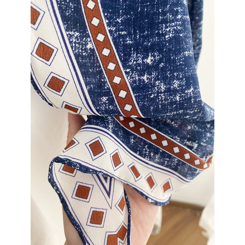 이탈리아 올드 머니 스타일 뽕나무 실크 크레페 드 친 봄 새로운 실크 스카프 다이아몬드 장식 긴 스카프 블루