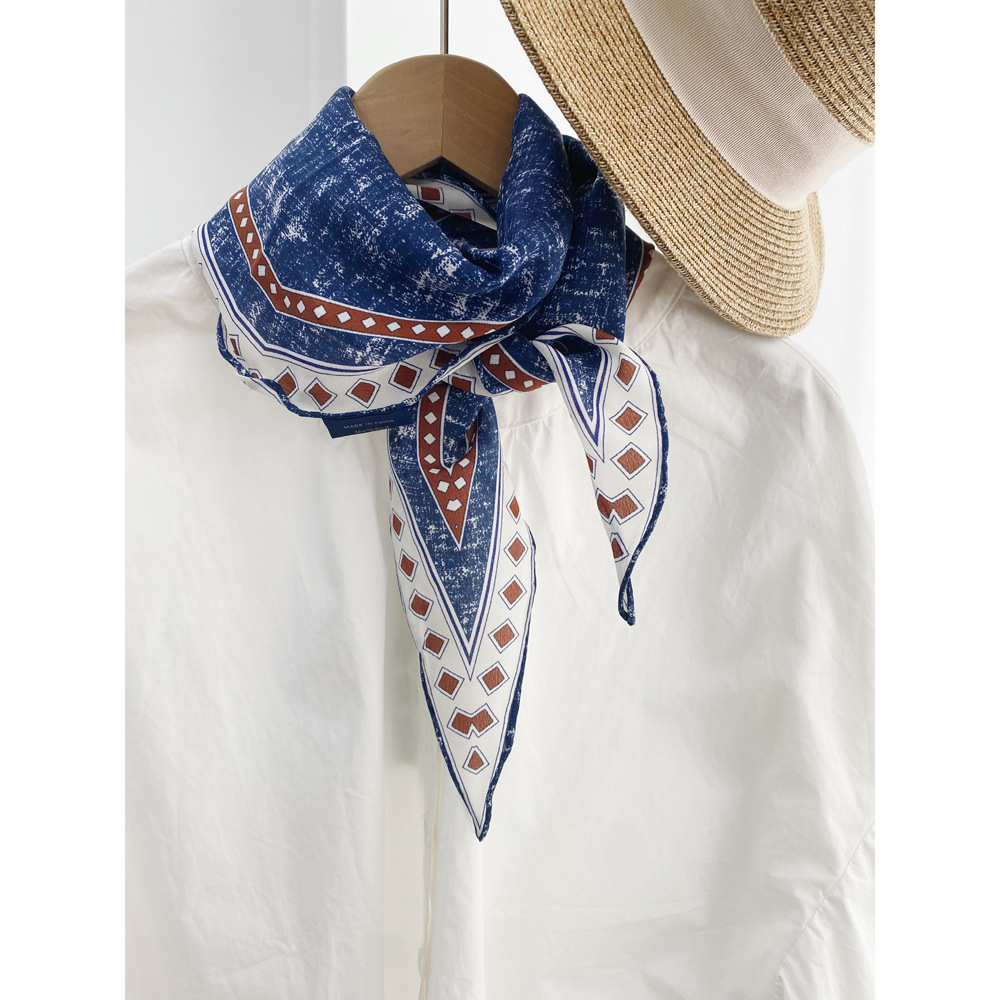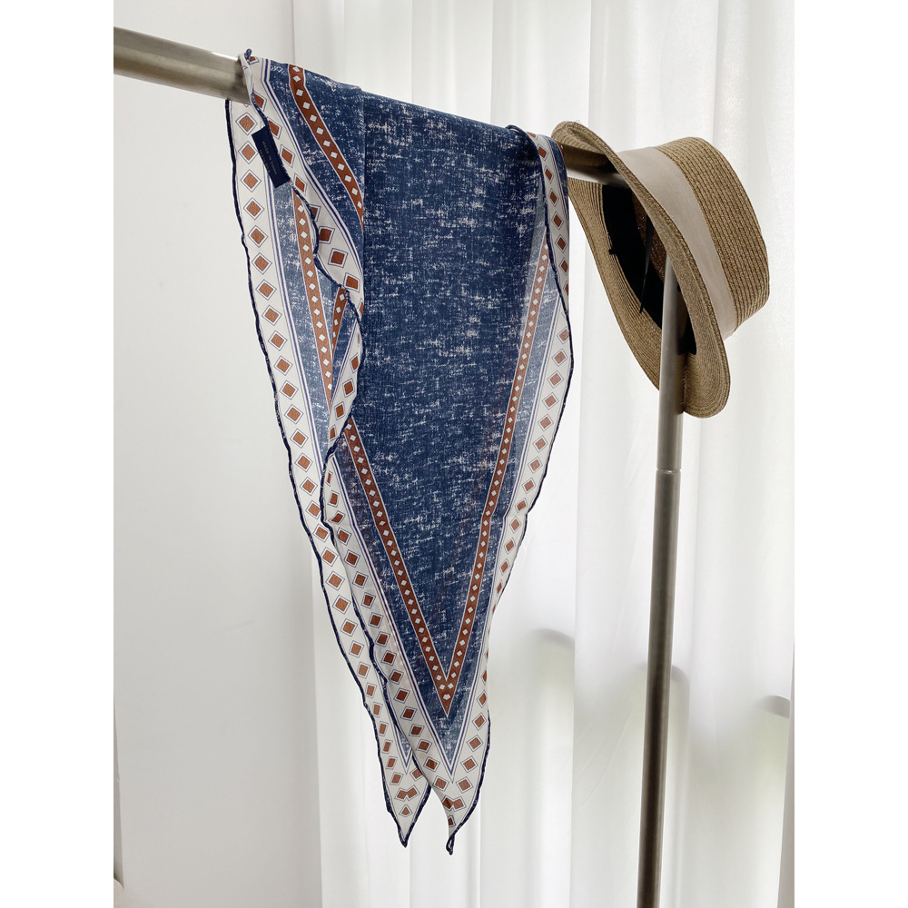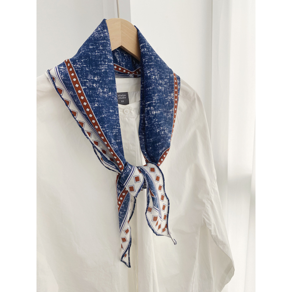 이탈리아 올드 머니 스타일 뽕나무 실크 크레페 드 친 봄 새로운 실크 스카프 다이아몬드 장식 긴 스카프 블루스토어 가기