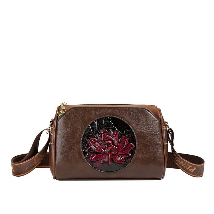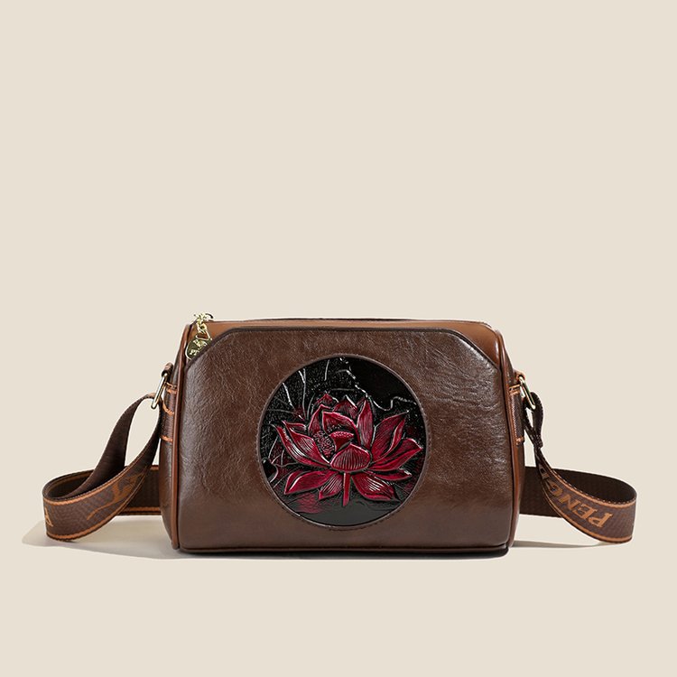 2025 여름 다용도 크로스백 크로스보더 여성용 가방 새로운 문학적 중국 스타일 패션 연꽃 엄마 가방 고급 숄더백