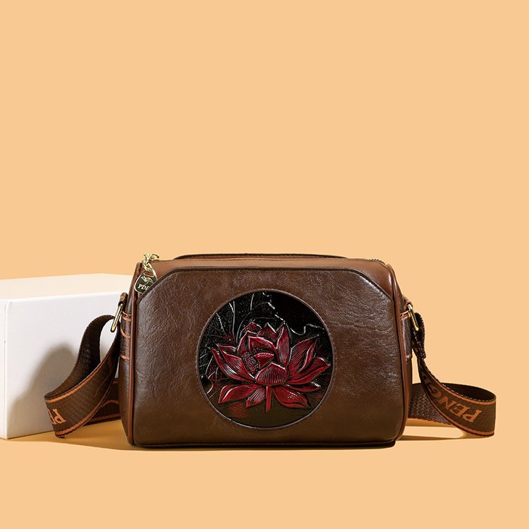 2025 여름 다용도 크로스백 크로스보더 여성용 가방 새로운 문학적 중국 스타일 패션 연꽃 엄마 가방 고급 숄더백스토어 가기