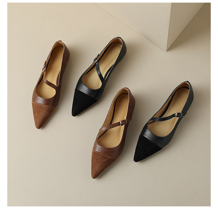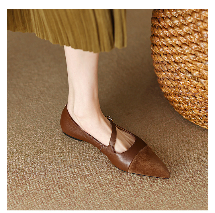 스티치 디자인 ~ 부드러운 가죽 뾰족한 발가락 레트로 신발 여성 2025 봄 여름 새로운 플랫 메리 제인 신발스토어 가기