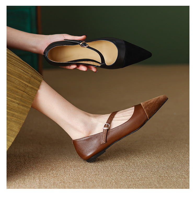 스티치 디자인 ~ 부드러운 가죽 뾰족한 발가락 레트로 신발 여성 2025 봄 여름 새로운 플랫 메리 제인 신발