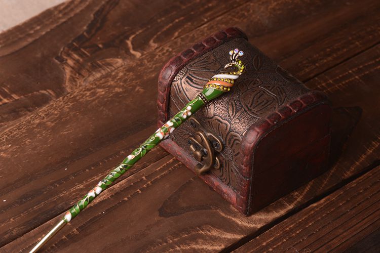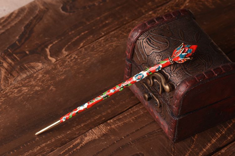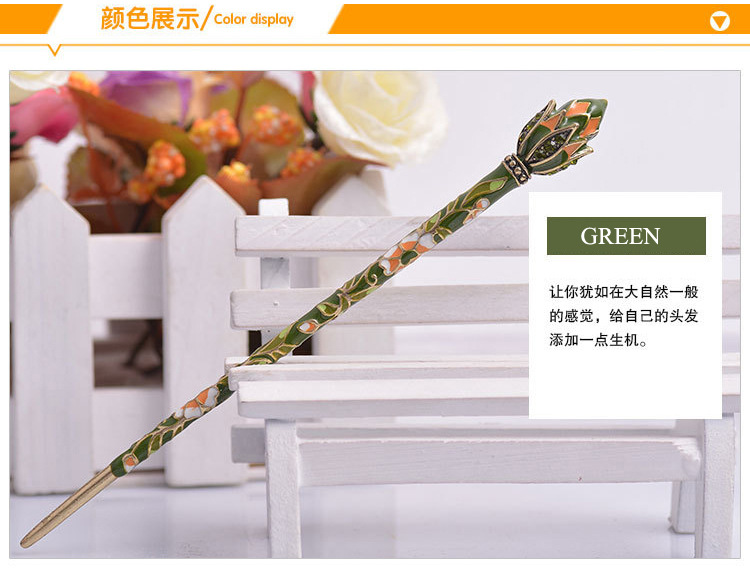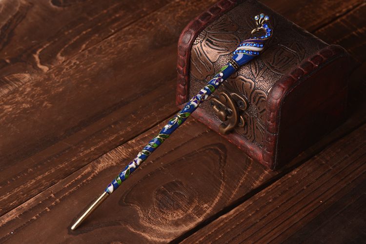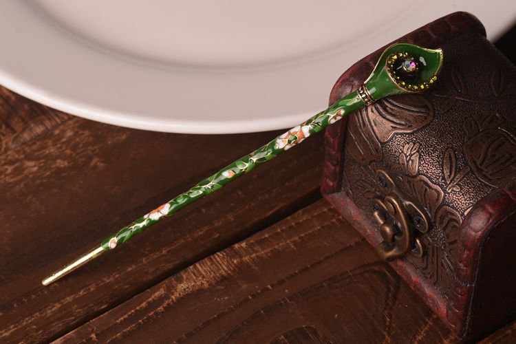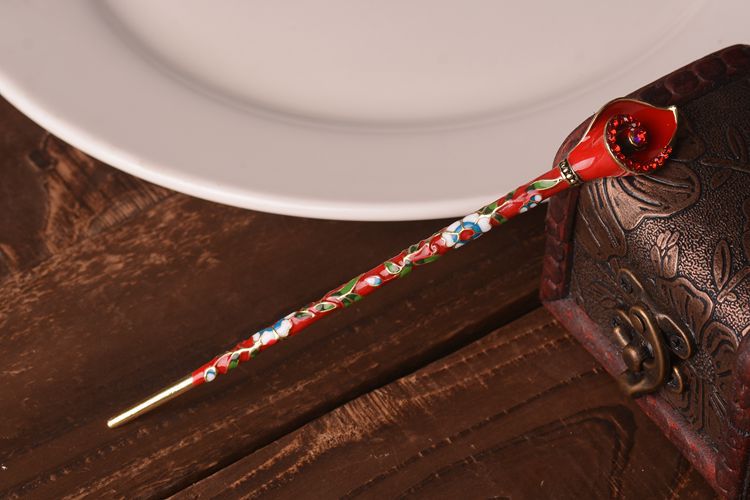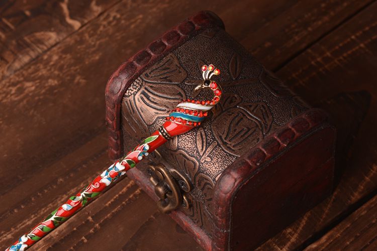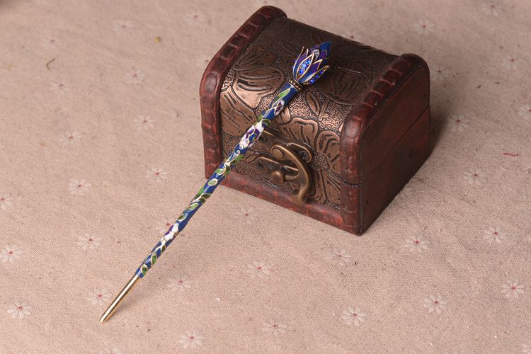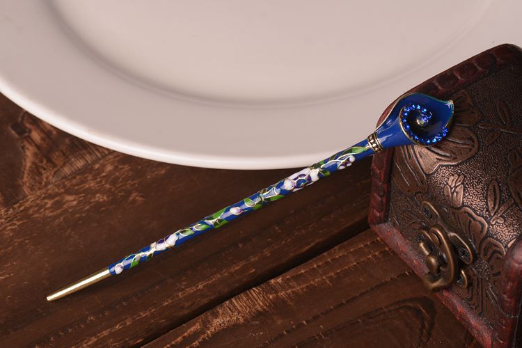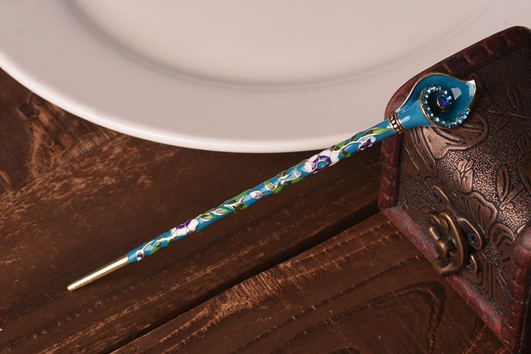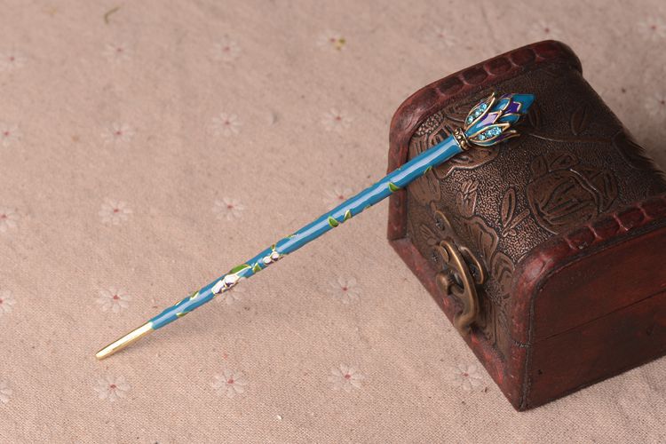 宫廷景泰蓝系列发饰在传统景泰蓝工艺基础上,结合了现代制作工艺,比如立体雕花工艺,宝石镶嵌工艺,并加入一些时尚元素,使之更适合现代审美。宫廷景泰蓝系列发簪,手镯致力于呈现宫廷收拾的华丽贵重,金碧辉煌之美。浓墨重彩的着色,勾勒出精巧细致的花纹,景泰蓝饰品的繁复与美丽有一种厚重感。