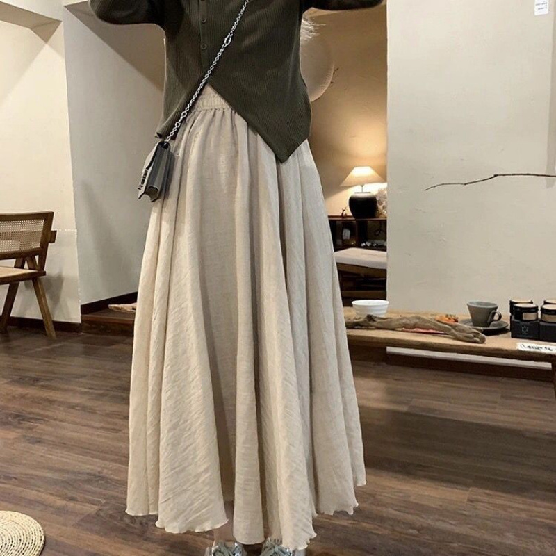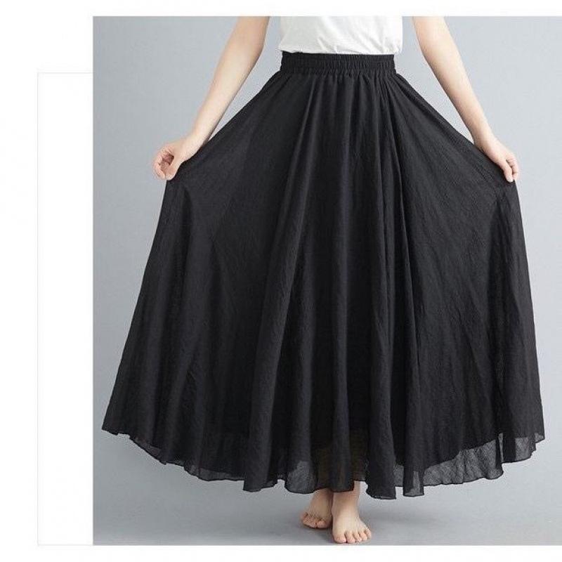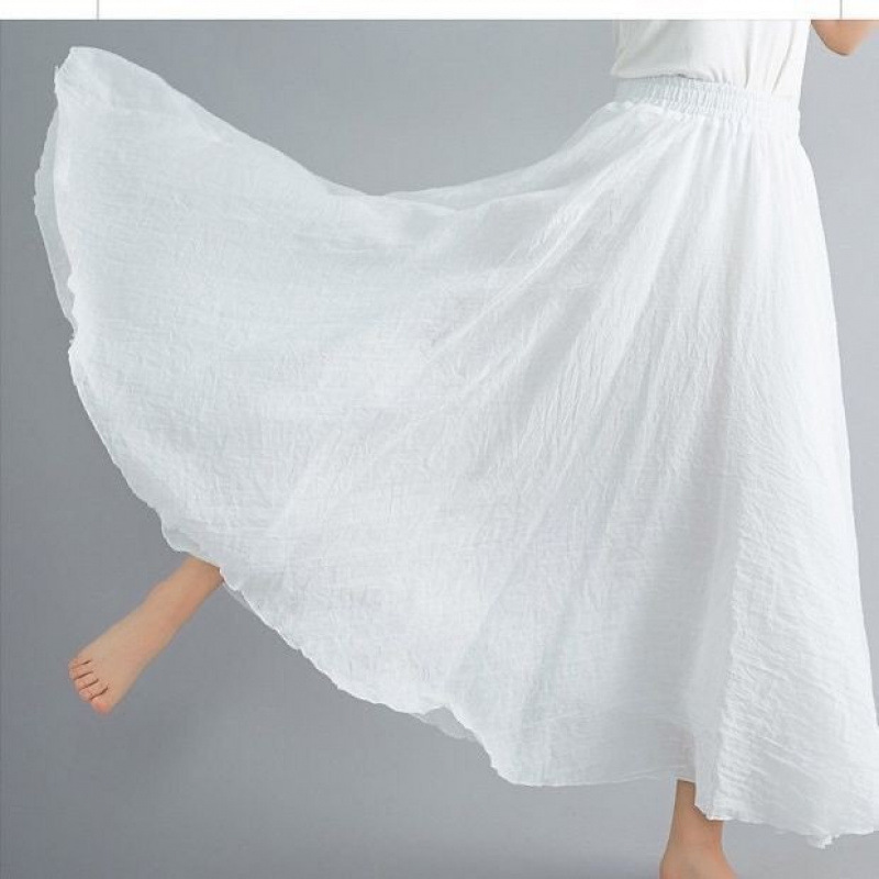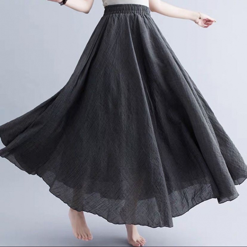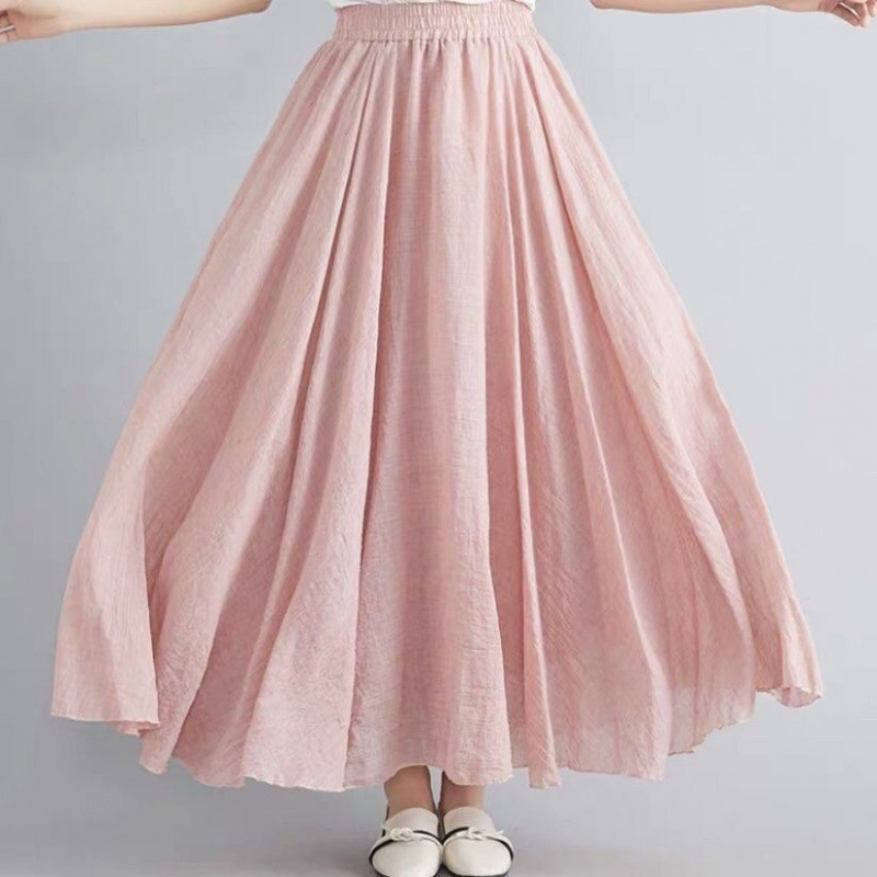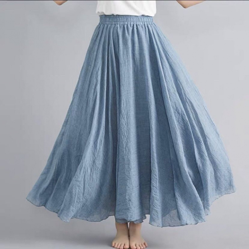 더블 레이어 코튼 및 리넨 스커트 여성 여름 민족 스타일 여성용 리넨 스커트 얇은 페어리 펄럭이는 페어리 스커트 대형 스윙스토어 가기