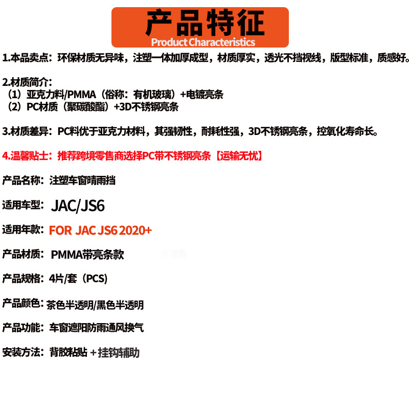 [국경 간] JAC JS6 2020 창 바이저 창 비 보드 비 눈썹에 적용 가능스토어 가기