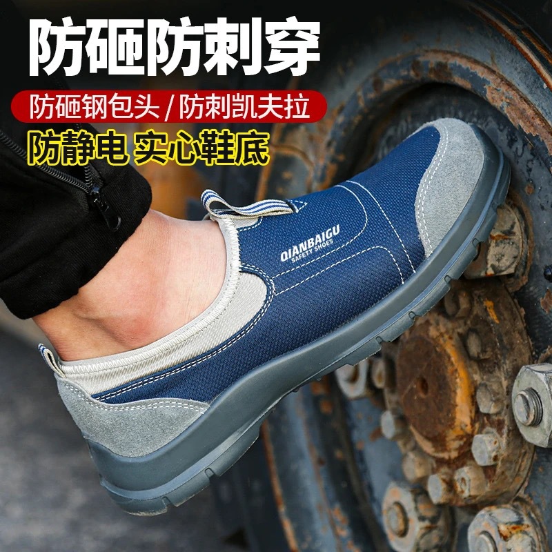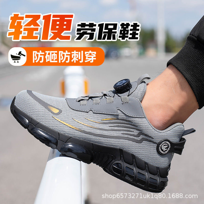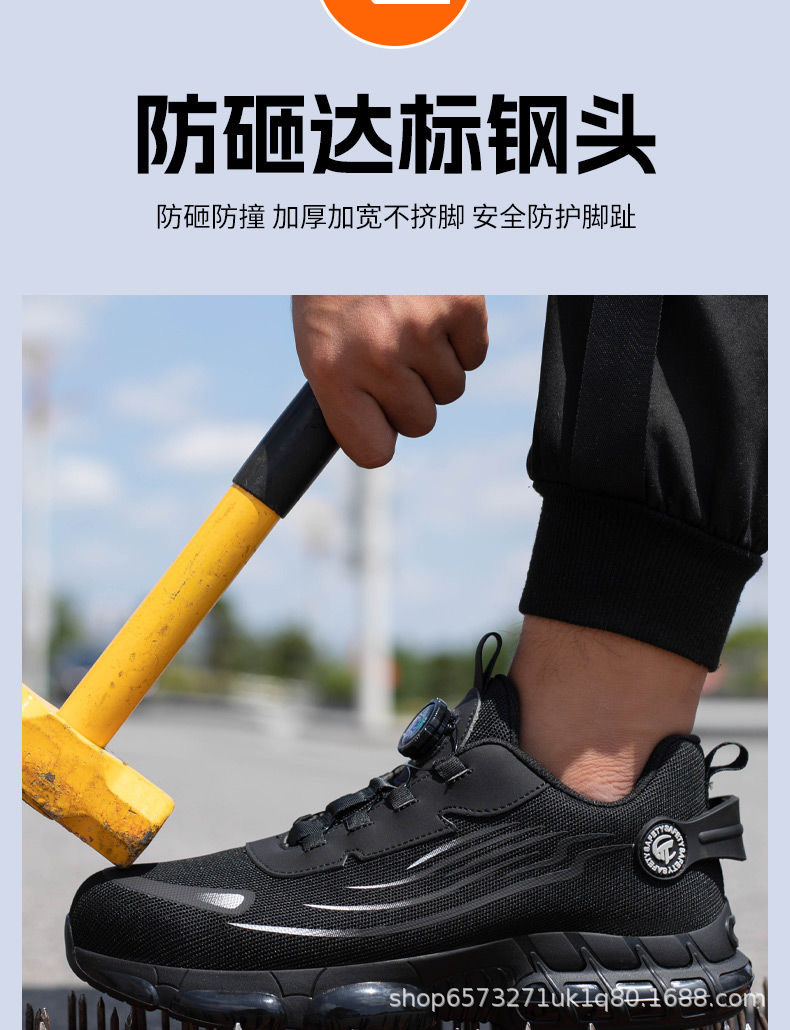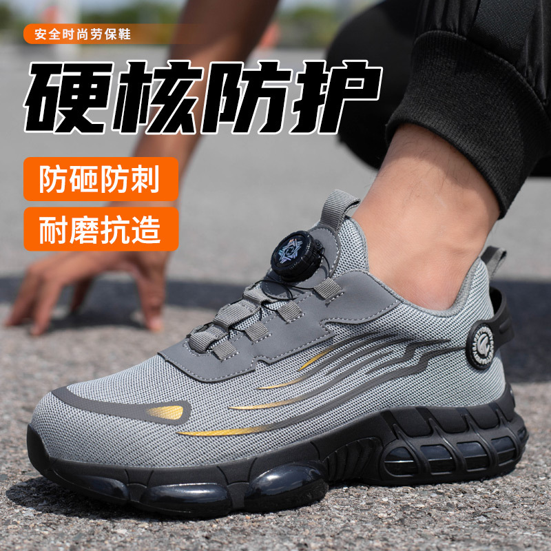 국경 간 패션 새로운 회전 버튼 노동 보호 신발 남성용 스매싱 방지 펑크 안전 신발 미끄럼 방지 내마모성 작업화