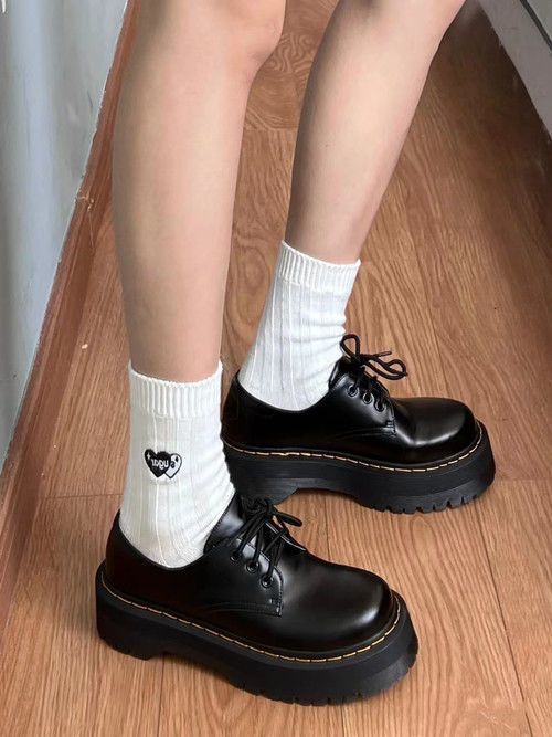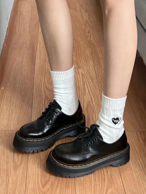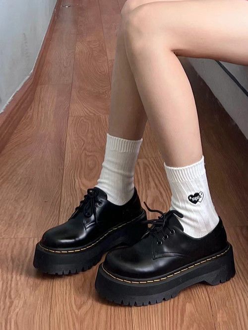 레트로 영국 스타일 두꺼운 단독 소형 가죽 신발 2025 가을 새로운 레이스 업 단색 간단한 마틴 싱글 신발스토어 가기