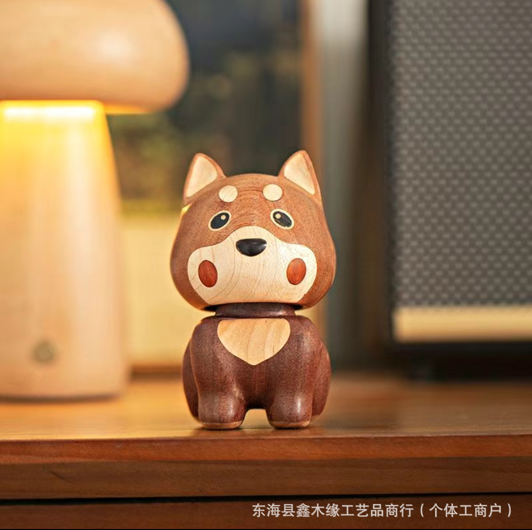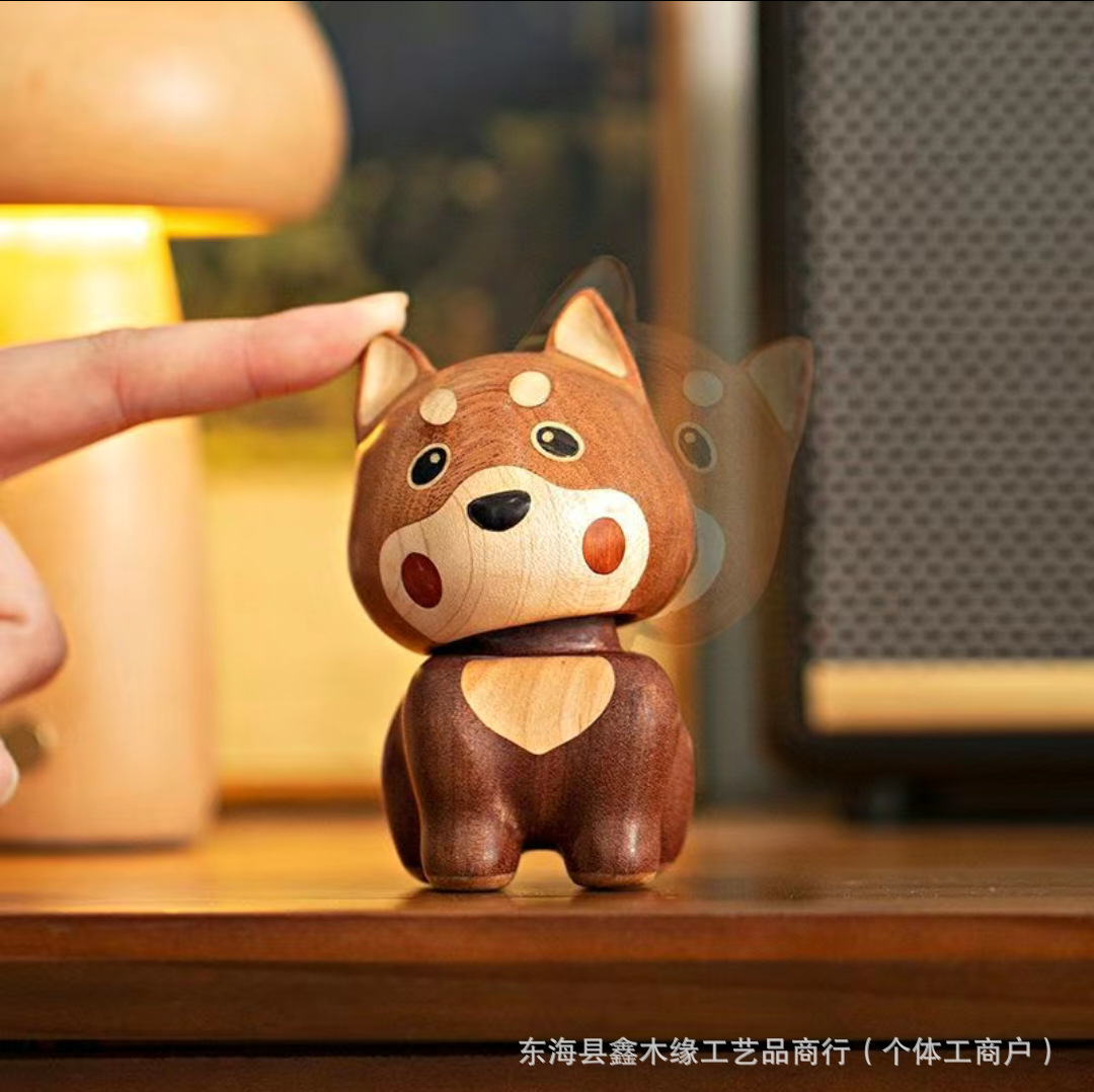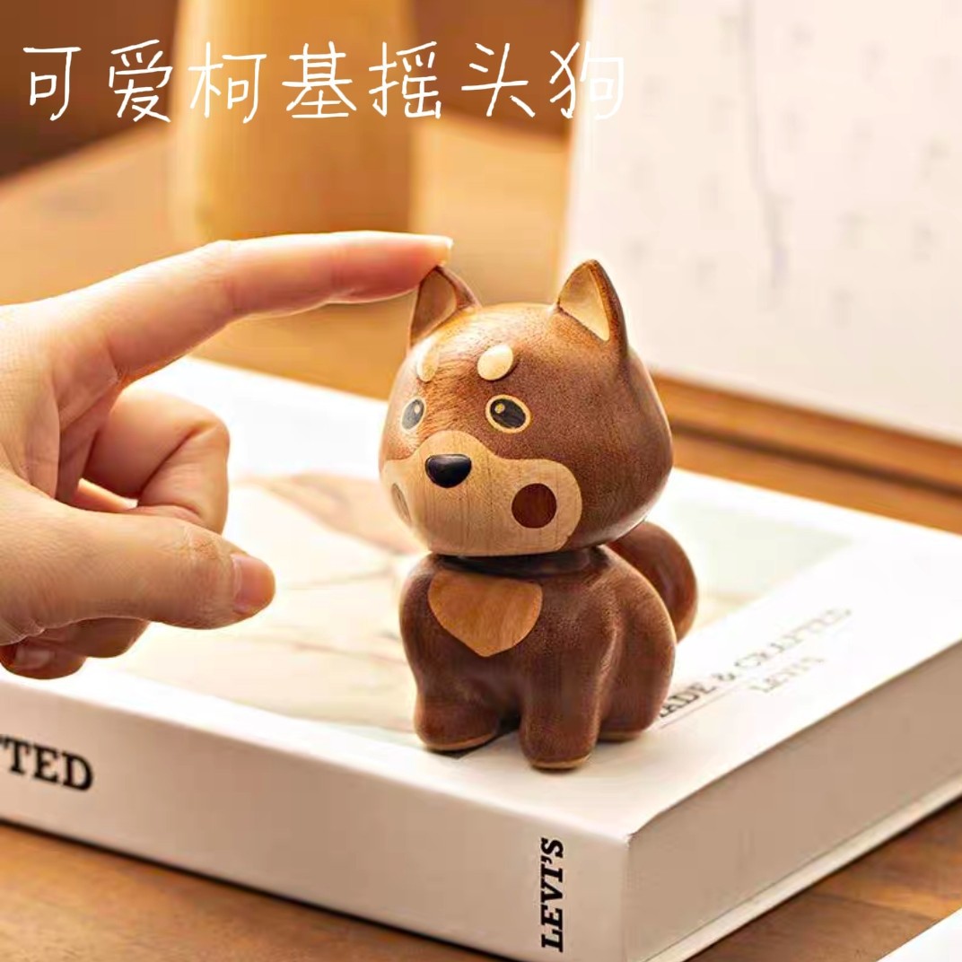 흔들리는 머리 코기 인형 가정 및 사무실 장식품 원목 수제 인레이 생일 선물 수제 목각스토어 가기
