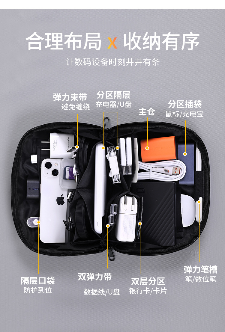 국경 간 새로운 화산 디지털 가방 여행 휴대용 데이터 케이블 마우스 헤드셋 충전 보물 디지털 액세서리 저장 가방