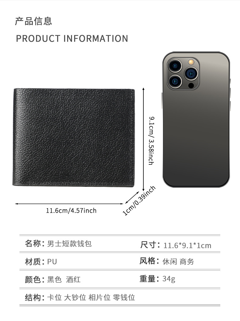 새로운 국경 간 공급 pu 변경 지갑 지갑 남성 짧은 멀티 카드 대용량 지갑 제조 업체 도매