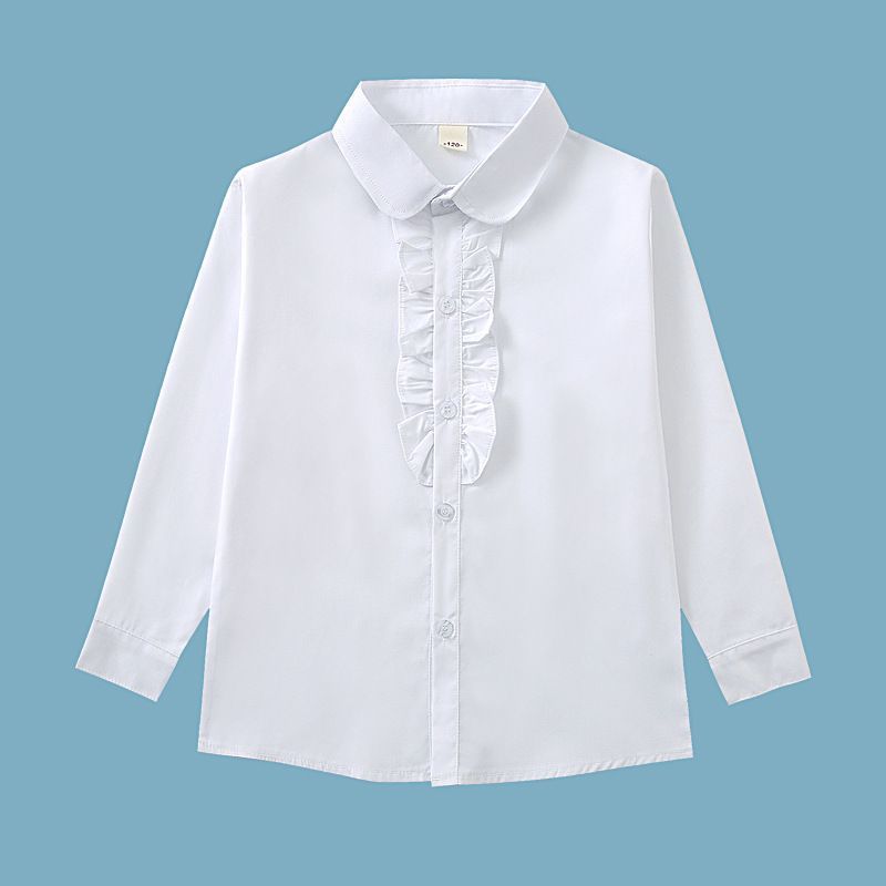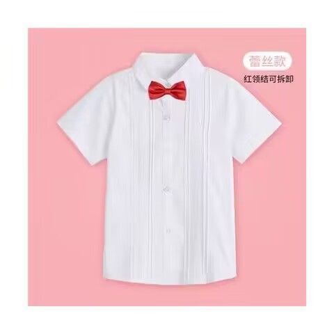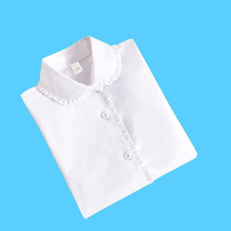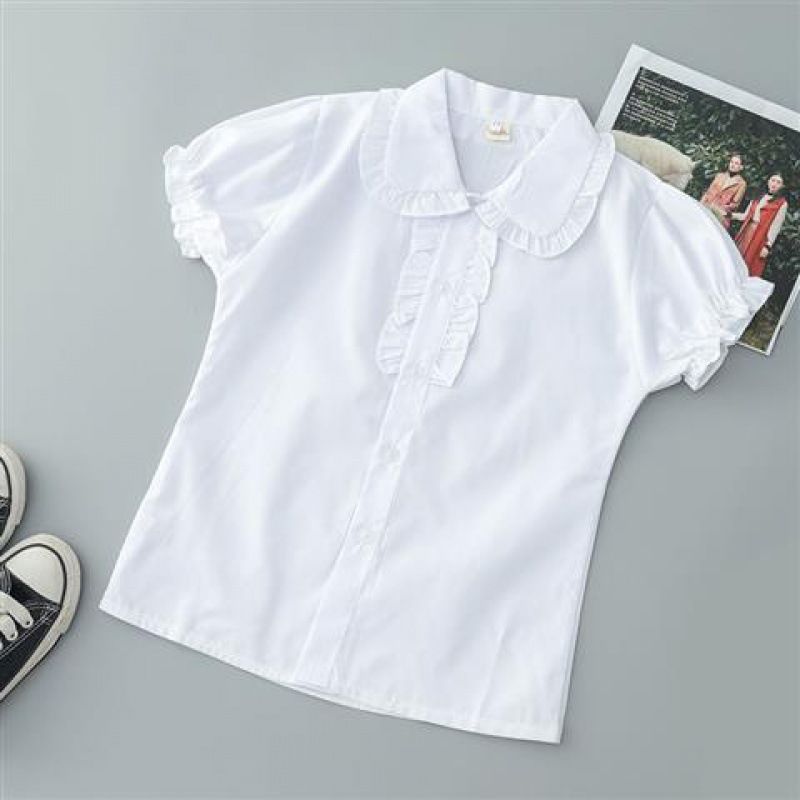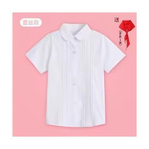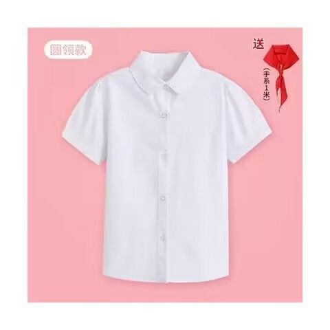 남학생과 여학생을 위한 학생용 반팔 흰색 셔츠, 여름용 얇은 라운드 넥 포인트 칼라 흰색 셔츠, 퍼포먼스 의류, 아동 교복스토어 가기