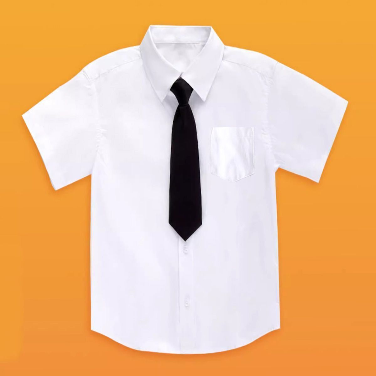 • 포인티드 칼라 흰색 반소매 + 검정색 넥타이