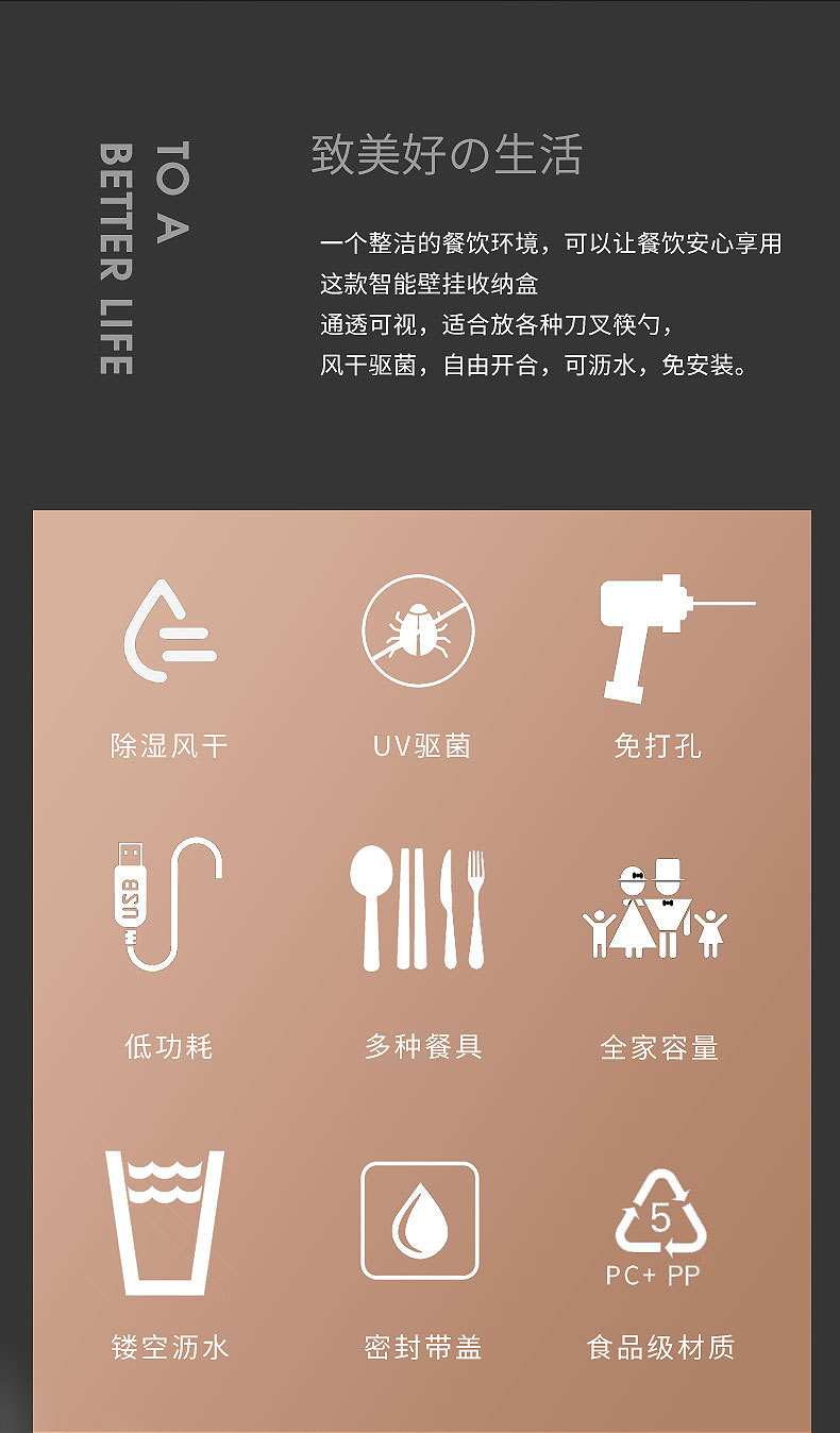 지능형 젓가락 바구니 소독기 건조 기능이 있는 젓가락 케이지 일체형 소형 가정용 보관함 펀치 없는 젓가락통 벽걸이형스토어 가기