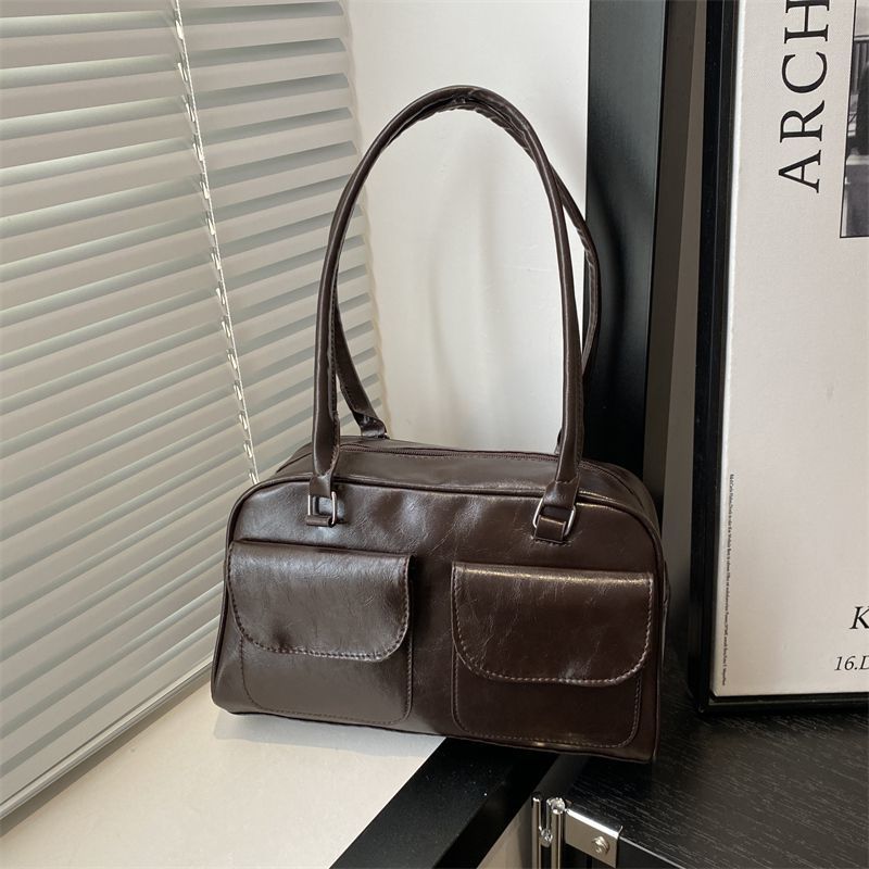 여성을위한 하이 엔드 복고풍 작은 가방 2024 새로운 가을, 겨울 통근 어깨 겨드랑이 가방 휴대용 보스턴 가방