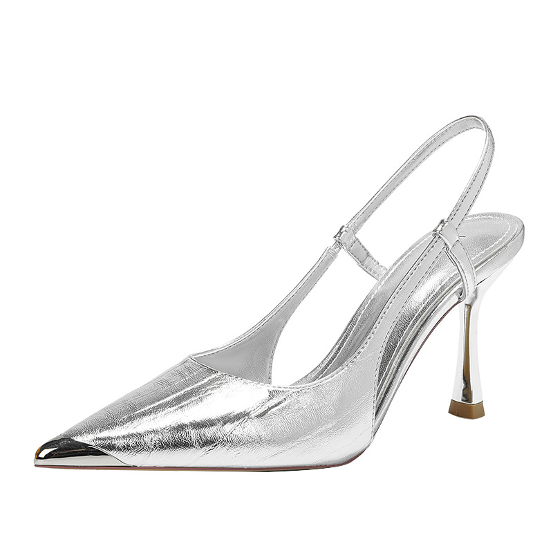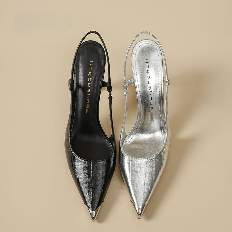 실버 샌들 여성용 2025 년 여름 새로운 프랑스 스타일 우아한 하이 엔드 느낌 Baotou 빈 스커트 스틸레토 힐 하이힐 신발스토어 가기