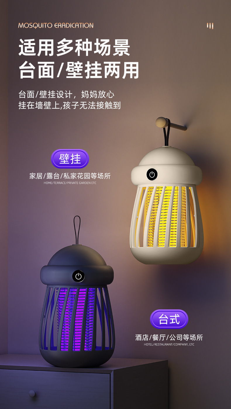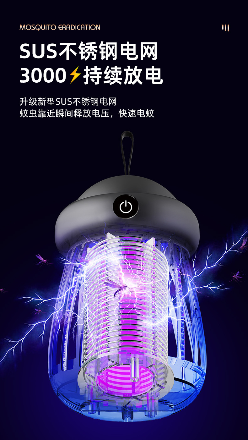 Chigo 새로운 모기 살해 램프 야외 전기 충격 실내 캠핑 텐트 편리한 USB 충전 다기능 야간 조명스토어 가기