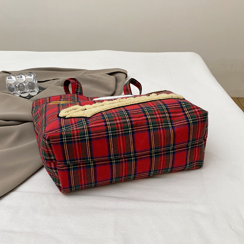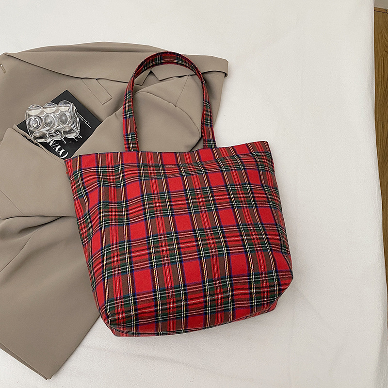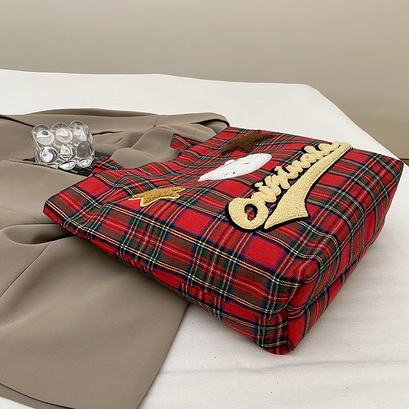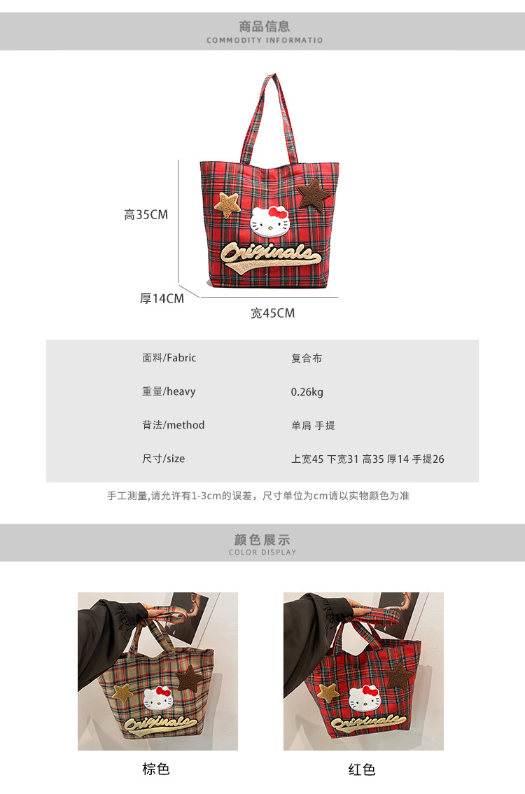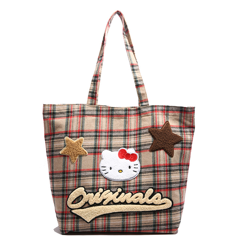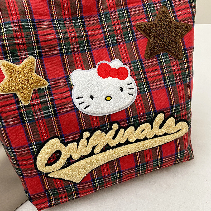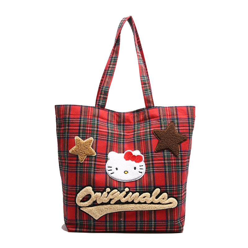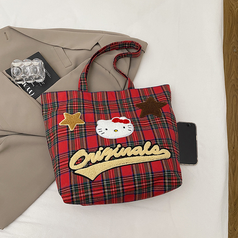 새로운 귀여운 만화 고양이 토트 백 격자 무늬 복고풍 소녀 숄더 백 대용량 Drawstring KT 핸드백스토어 가기