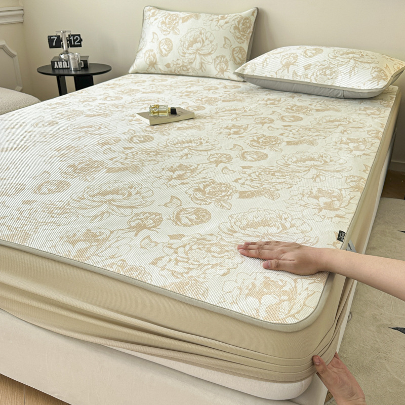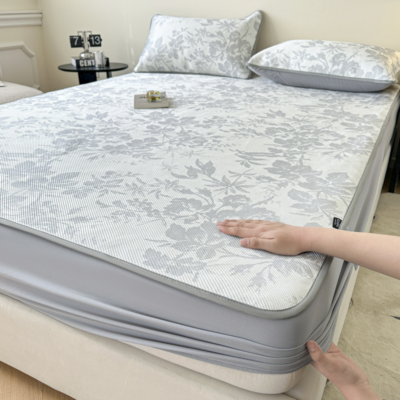 클래스 A 아이스 실크 매트 3 피스 세트 여름 아이스 등나무 매트 세탁 가능한 접이식 에어컨 소프트 매트 싱글 더블스토어 가기