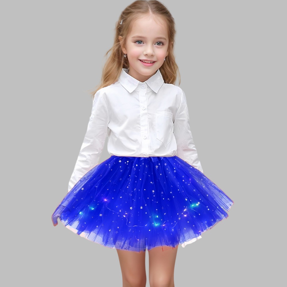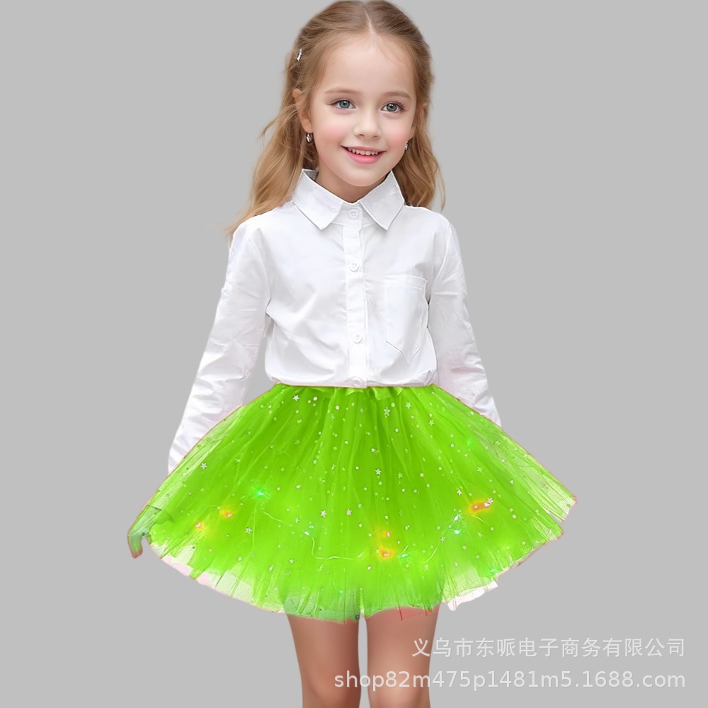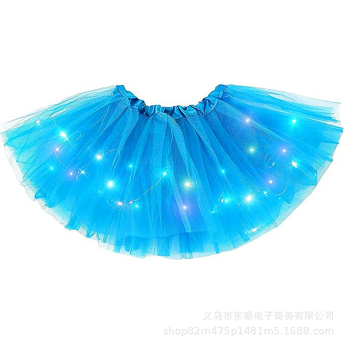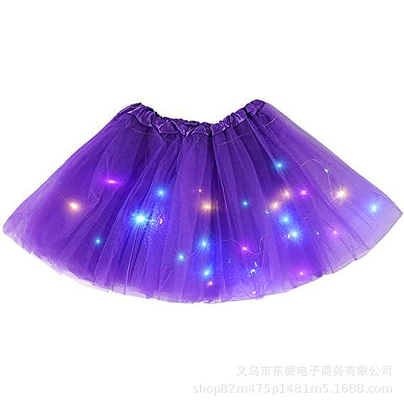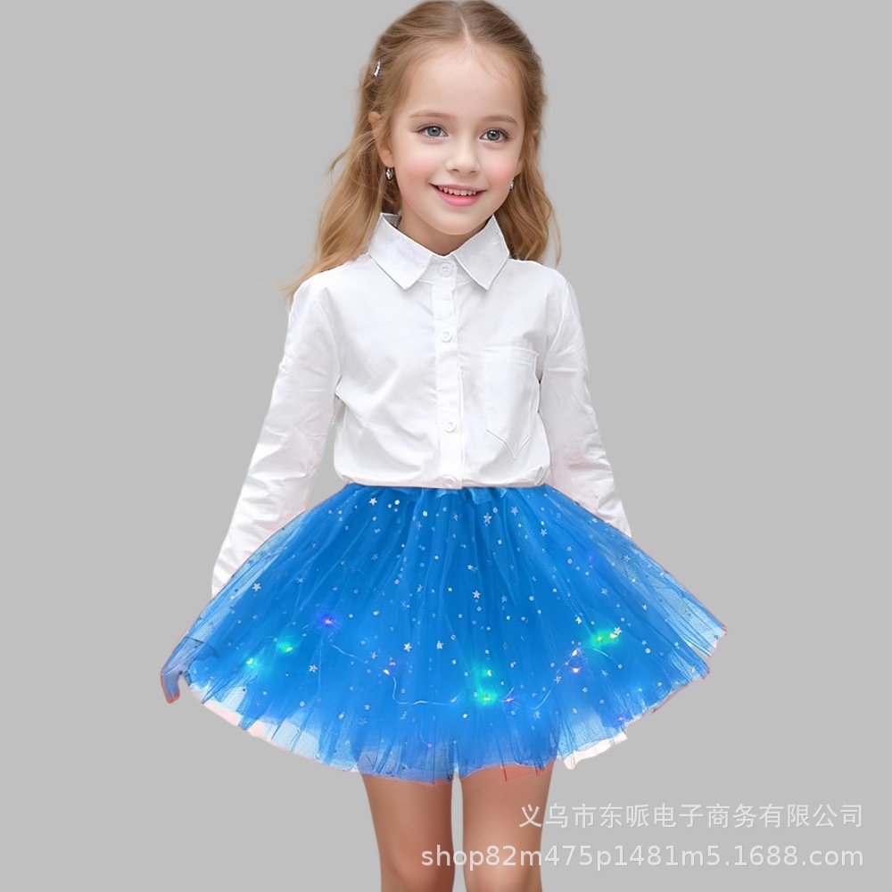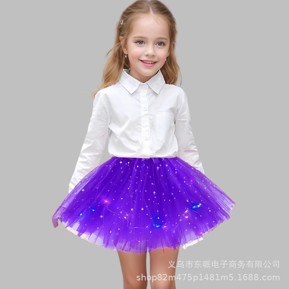 빛나는 발레 원피스 어린이 댄스 공연 푹신한 베일 원피스 소녀 3 층 6 피스 메시 베일 원피스 LED 조명