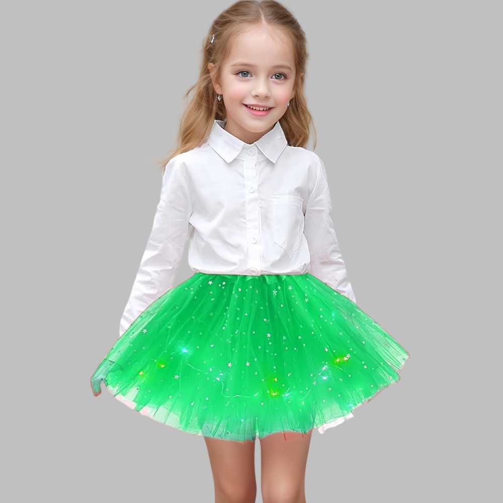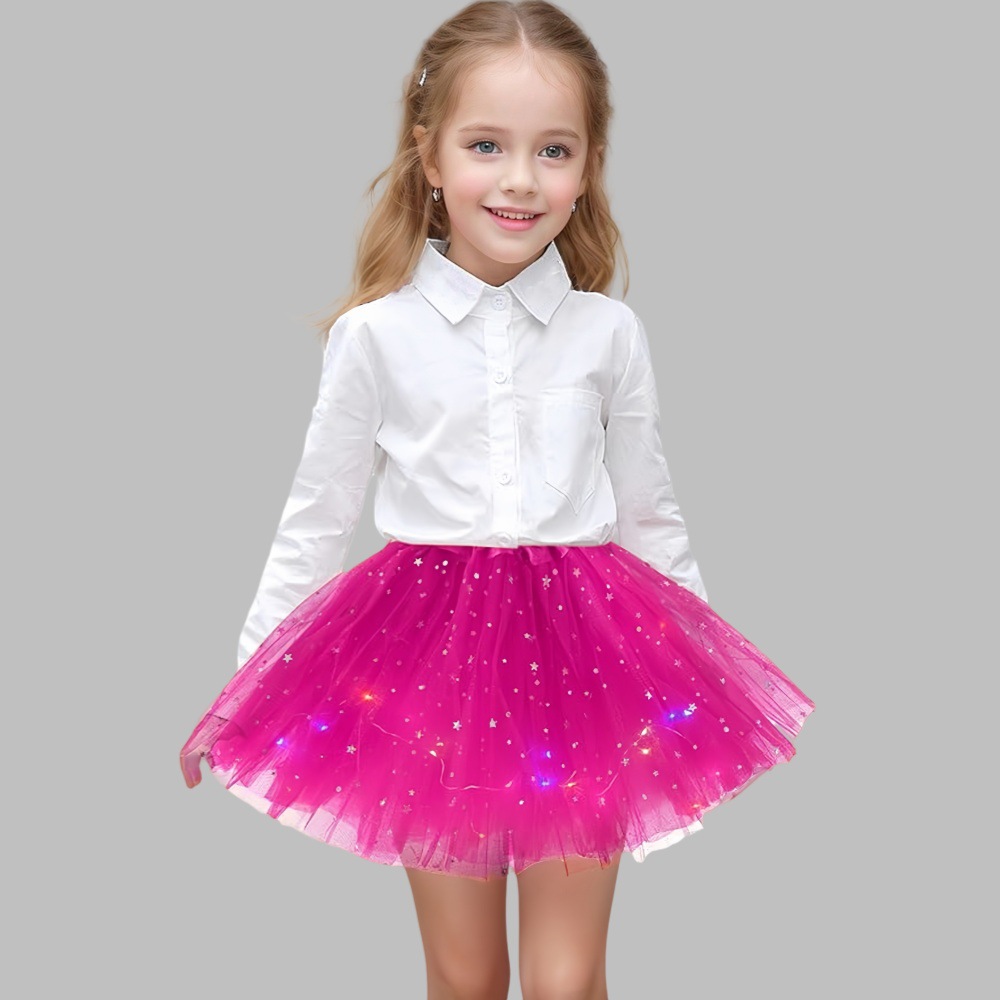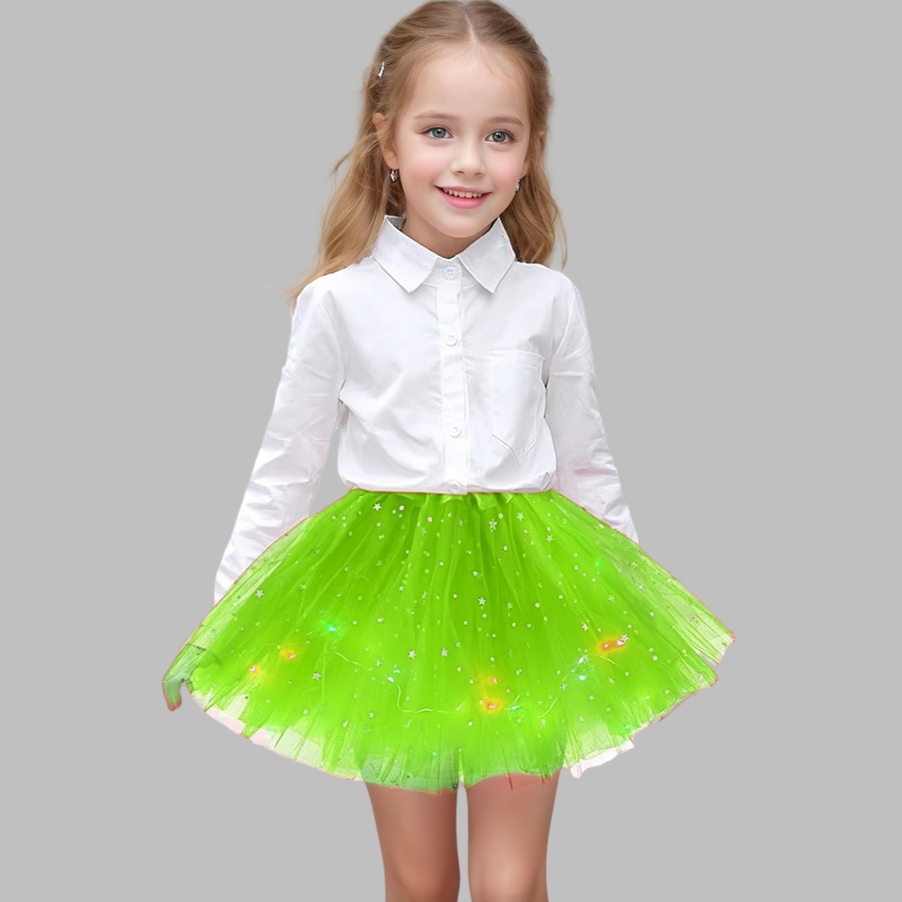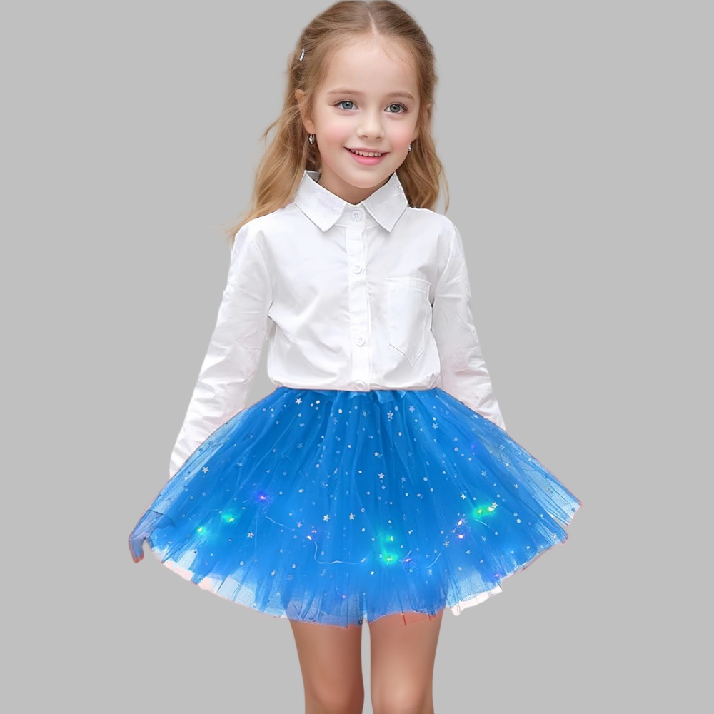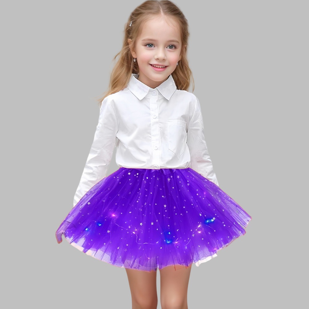빛나는 발레 원피스 어린이 댄스 공연 푹신한 베일 원피스 소녀 3 층 6 피스 메시 베일 원피스 LED 조명