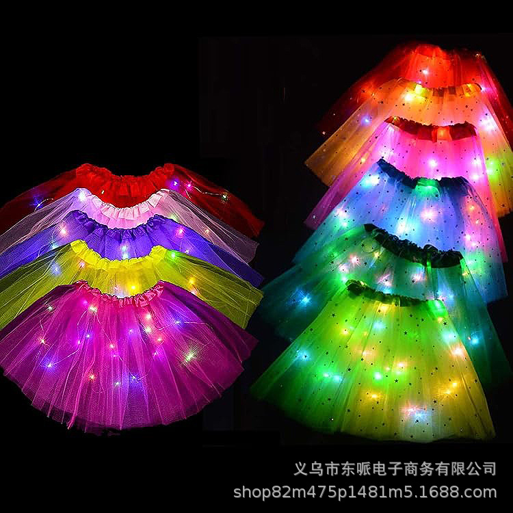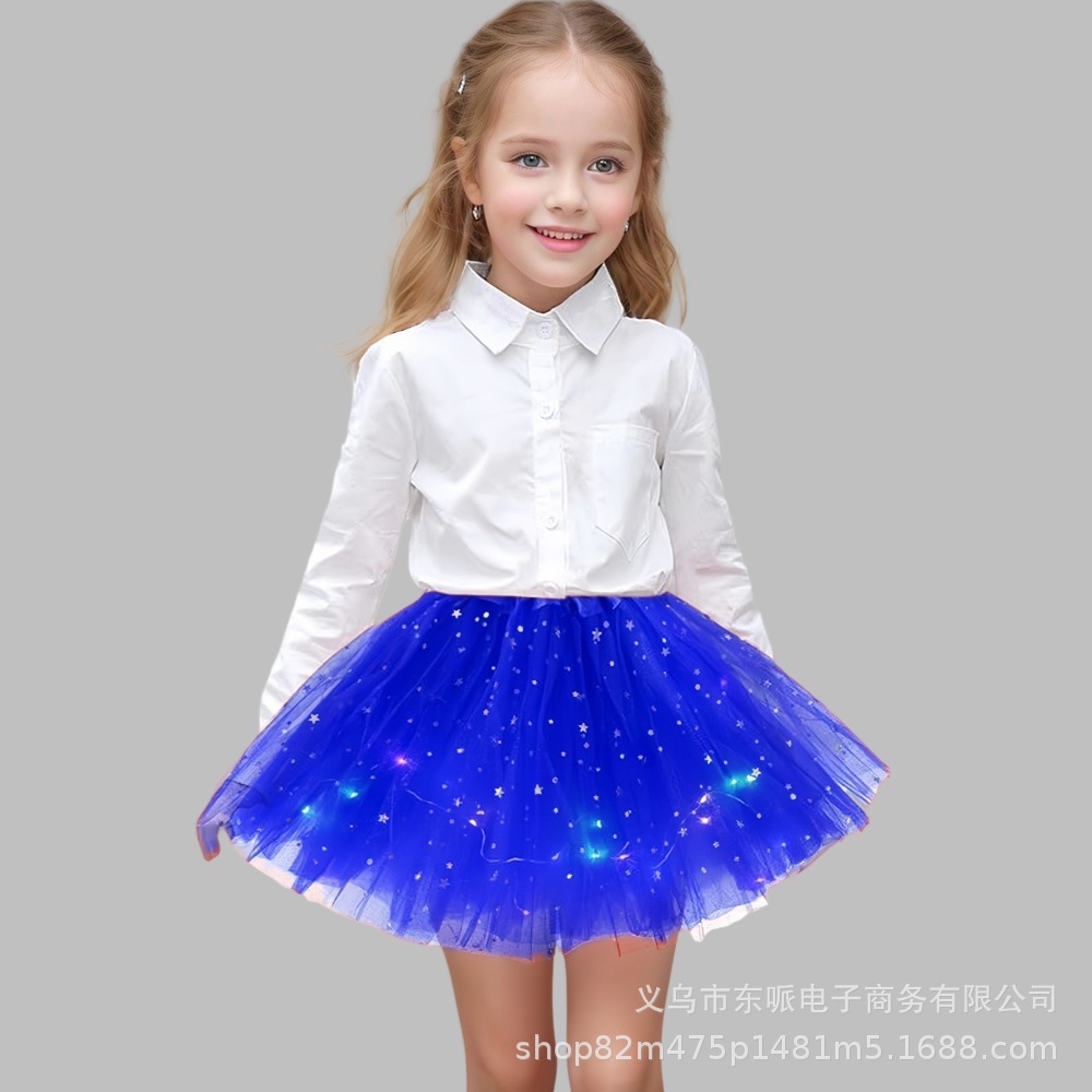 빛나는 발레 원피스 어린이 댄스 공연 푹신한 베일 원피스 소녀 3 층 6 피스 메시 베일 원피스 LED 조명스토어 가기
