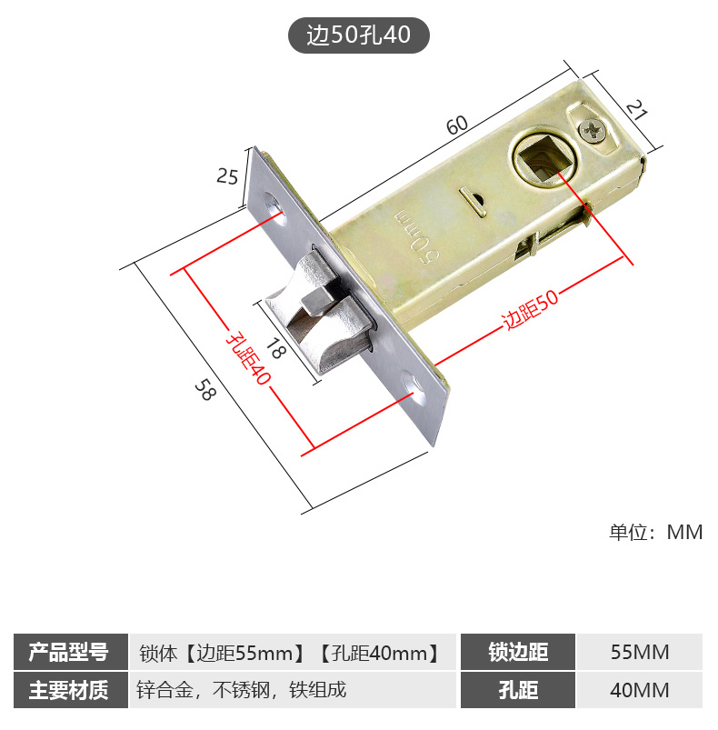 • 다음 구멍 간격은 47mm이며 일반적으로 실내 도어 잠금 장치에 적합합니다. - 35-50mm - 범용 유형 - 키 없음