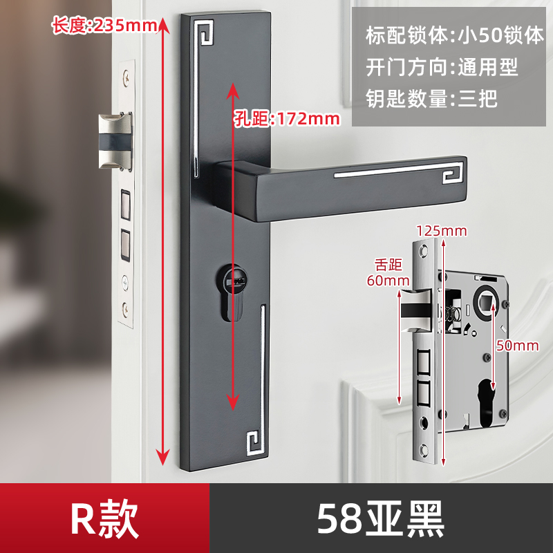 검은색 문 잠금 장치, 가정용 범용 침실 문 잠금 장치, 3피스 세트, 조용한 구식 문 손잡이, 구식 문 잠금 장치