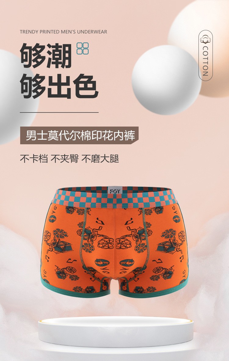 모달면 남성 속옷 인쇄 편안한 통기성 스포츠 버전 느슨한 새로운 부드러운 항균 복서 반바지스토어 가기