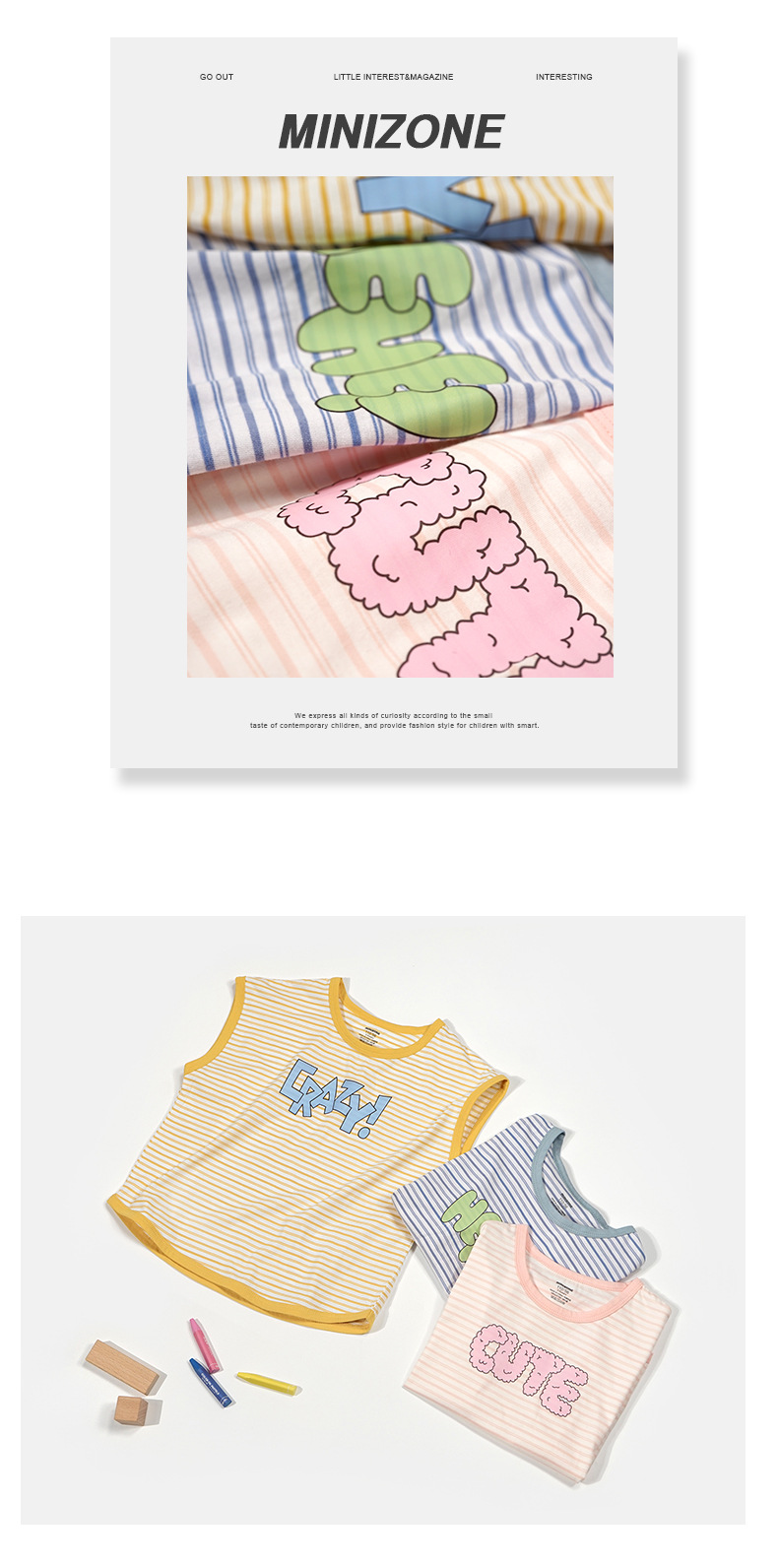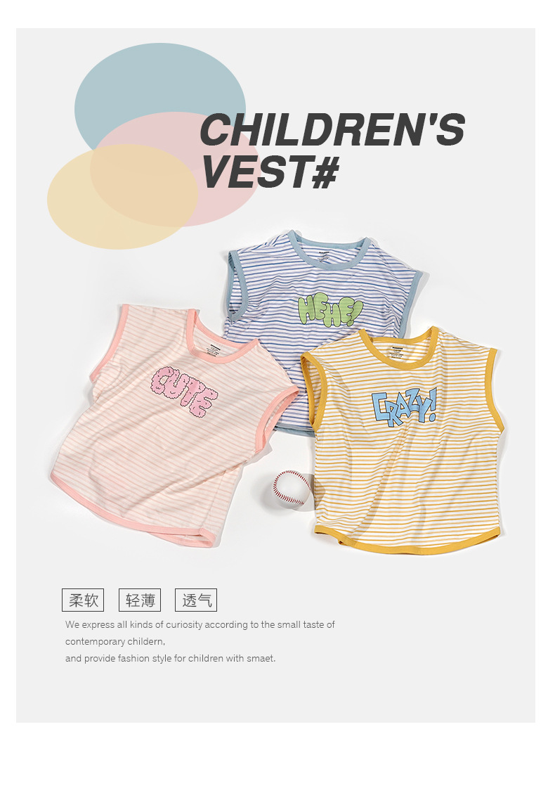 미니존 아동용 조끼 만화 순면 얇은 스타일 남녀 아동복 속옷 겉옷 캐주얼 스트라이프 순면 A급스토어 가기