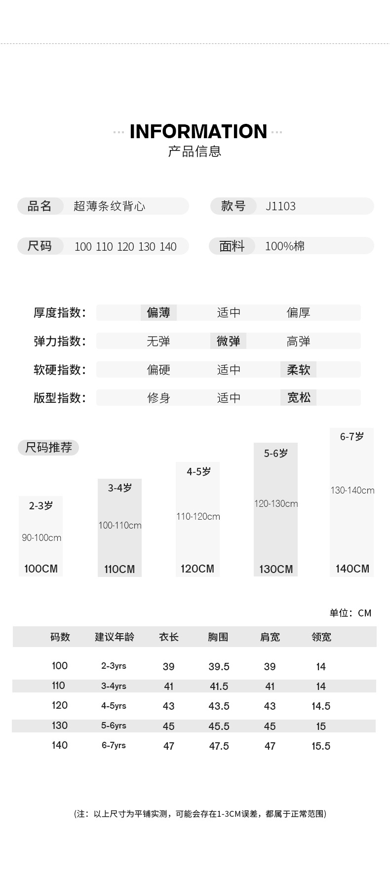 미니존 아동용 조끼 만화 순면 얇은 스타일 남녀 아동복 속옷 겉옷 캐주얼 스트라이프 순면 A급