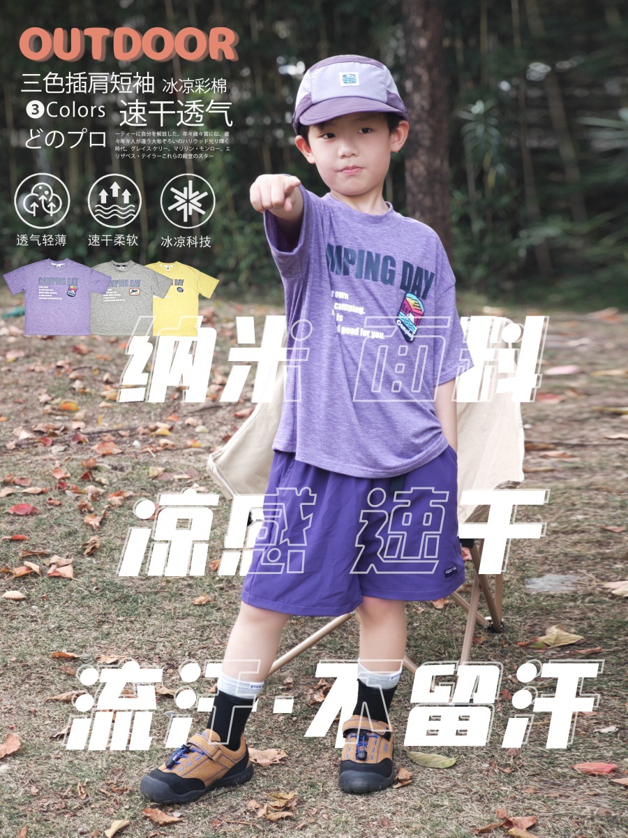 定制纳米凉感彩棉,吸湿排汗,速干舒爽,流汗,不留汗!多巴胺糖果配色,山系Logo贴布,简约而不简单;清爽凉感,排汗速干,夏日带娃神器