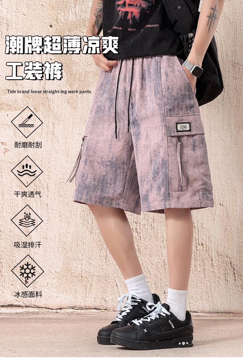 여름 얇은 작업복 짧은 바지 남성용 플러스 사이즈 유행 브랜드 느슨한 캐주얼 바지 남성용 더러운 바지