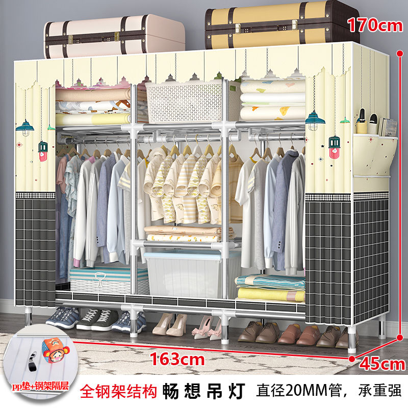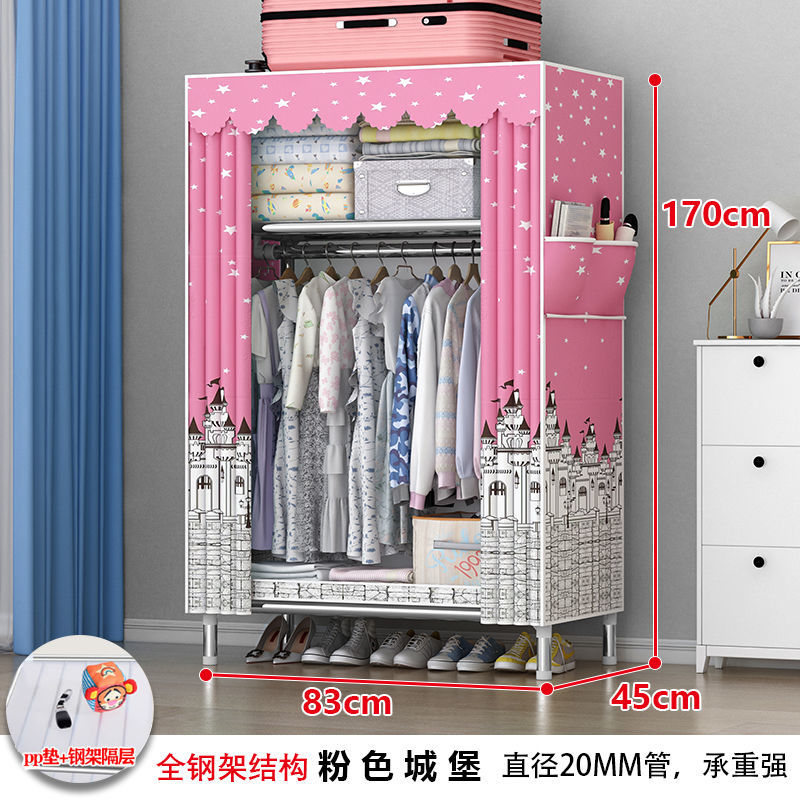 간단한 옷장, 전체 강철 프레임 옷장, 조립된 강철 파이프, 두껍고 강화된 보관 캐비닛, 가정용 침실 보관 캐비닛, 임대실