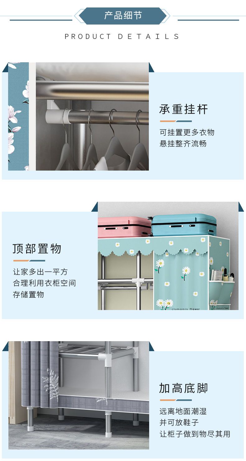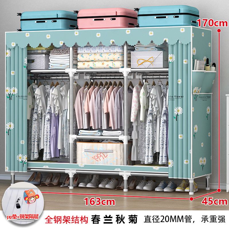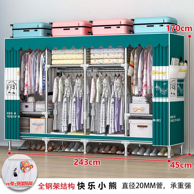 간단한 옷장, 전체 강철 프레임 옷장, 조립된 강철 파이프, 두껍고 강화된 보관 캐비닛, 가정용 침실 보관 캐비닛, 임대실스토어 가기