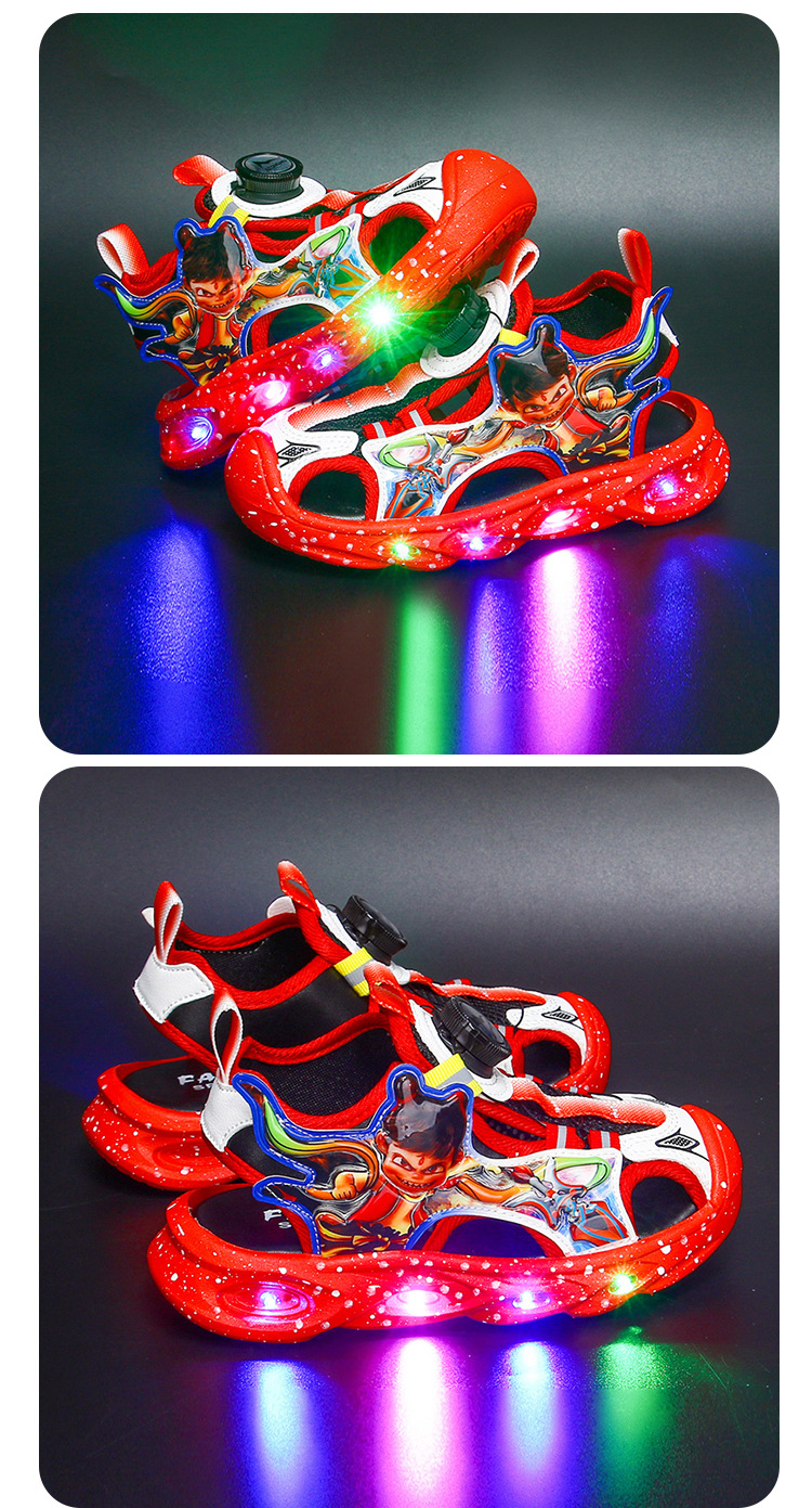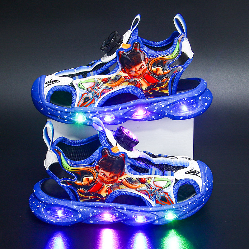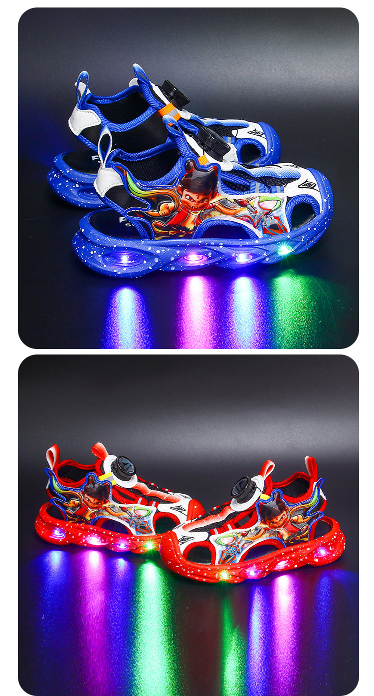 조명이 달린 도매 소년 샌들 바오터 미끄럼 방지 부드러운 밑창 비치 슈즈와 함께 2025 여름 새로운 어린이 샌들스토어 가기