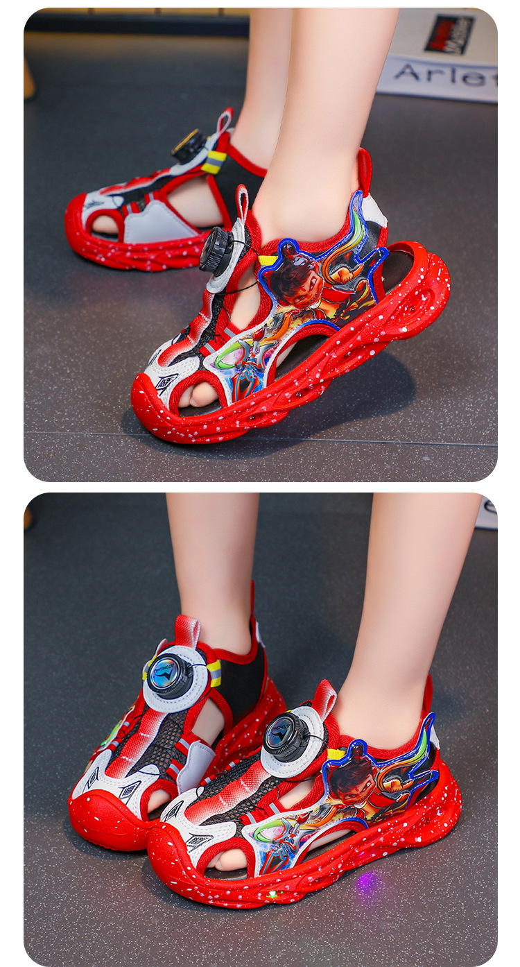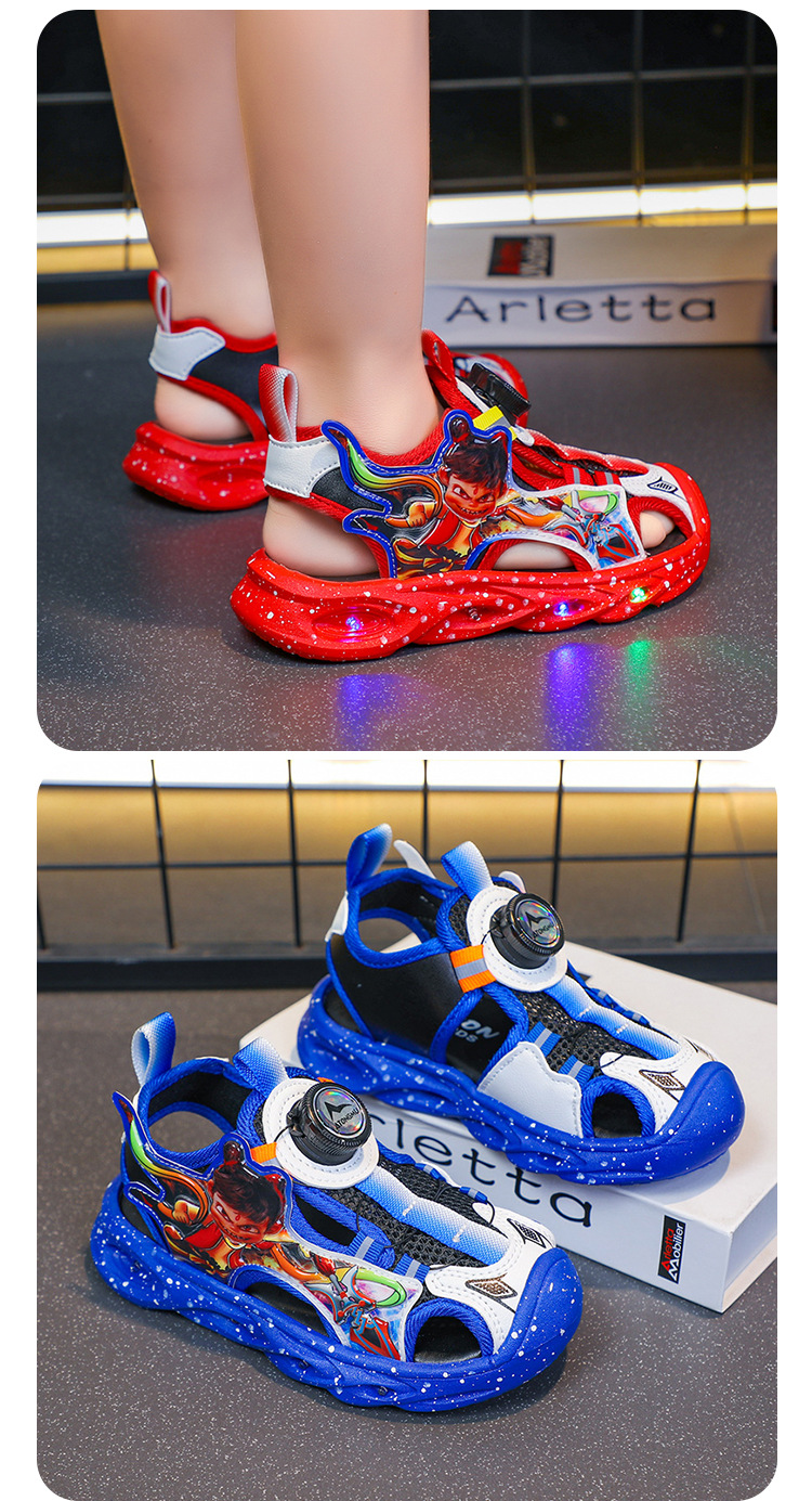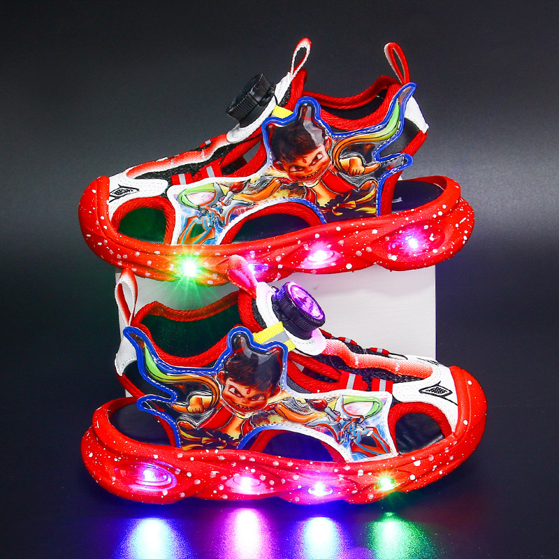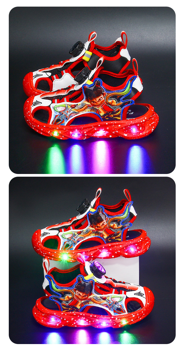 조명이 달린 도매 소년 샌들 바오터 미끄럼 방지 부드러운 밑창 비치 슈즈와 함께 2025 여름 새로운 어린이 샌들스토어 가기