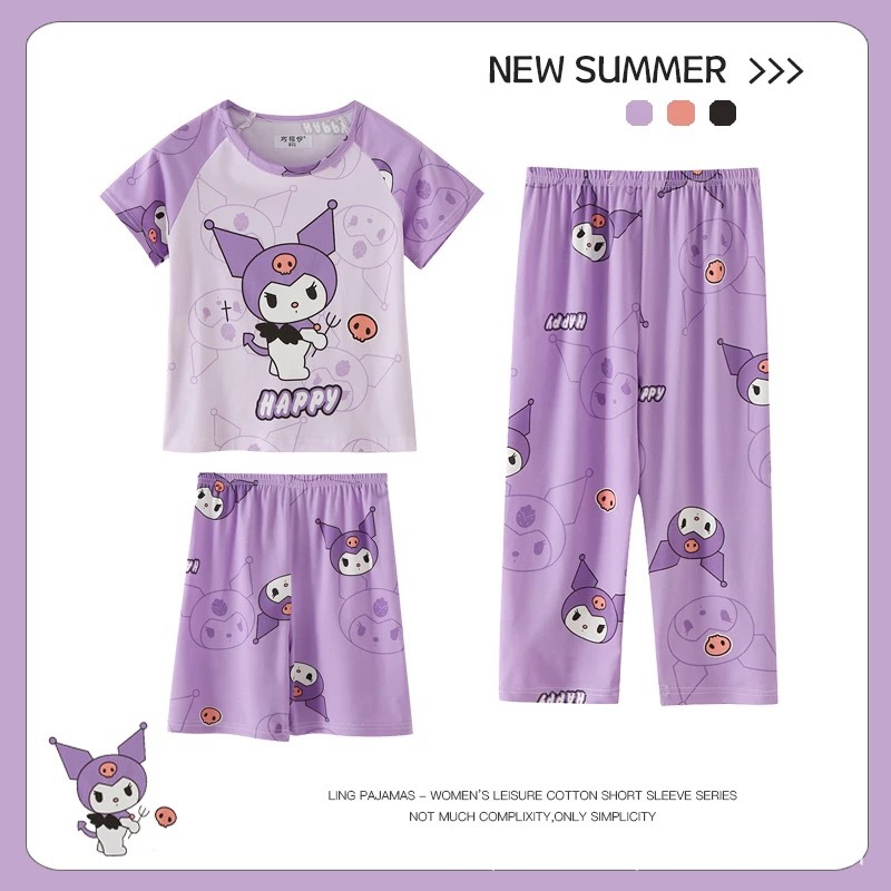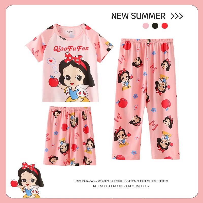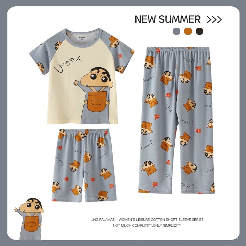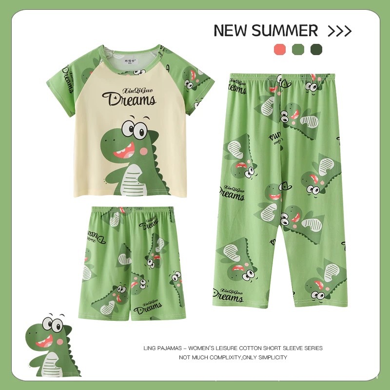 여름 어린이 잠옷 소년 반팔 바지 3 종 세트 여아 에어컨 의류 아기 만화 소년 홈 옷
