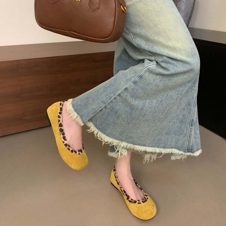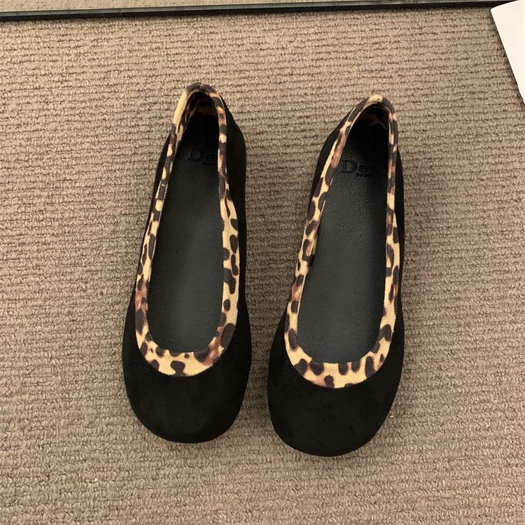2025 봄 여름 새로운 대외 무역 틈새 복고풍 둥근 발가락 얕은 구두 여성 한국 스타일 스웨이드 레오파드 프린트 부드러운 밑창 신발 크로스 보더