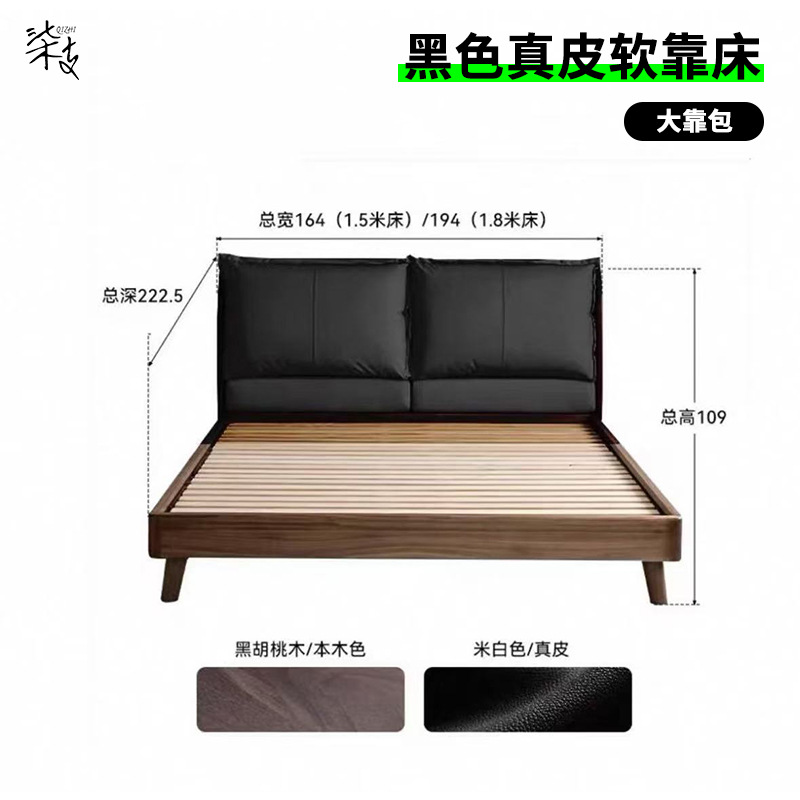 북유럽 검은 호두나무 원목 침대 마스터 침실 풀 더블 침대스토어 가기