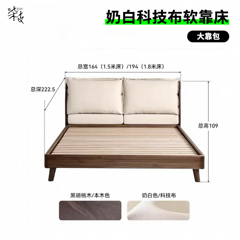 • 크리미한 화이트 테크니컬 패브릭 대형 등받이 호두 소나무 판자