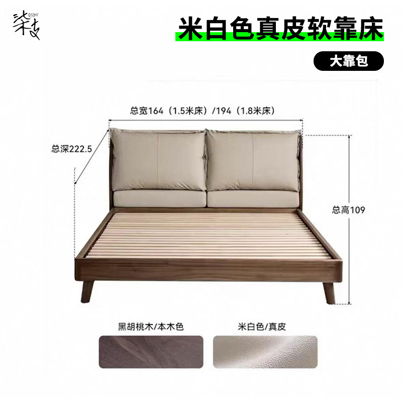 • 황백색 가죽 대형 등받이 호두 소나무 판자