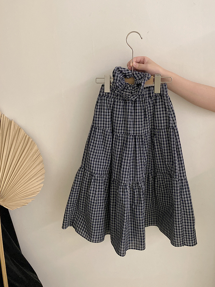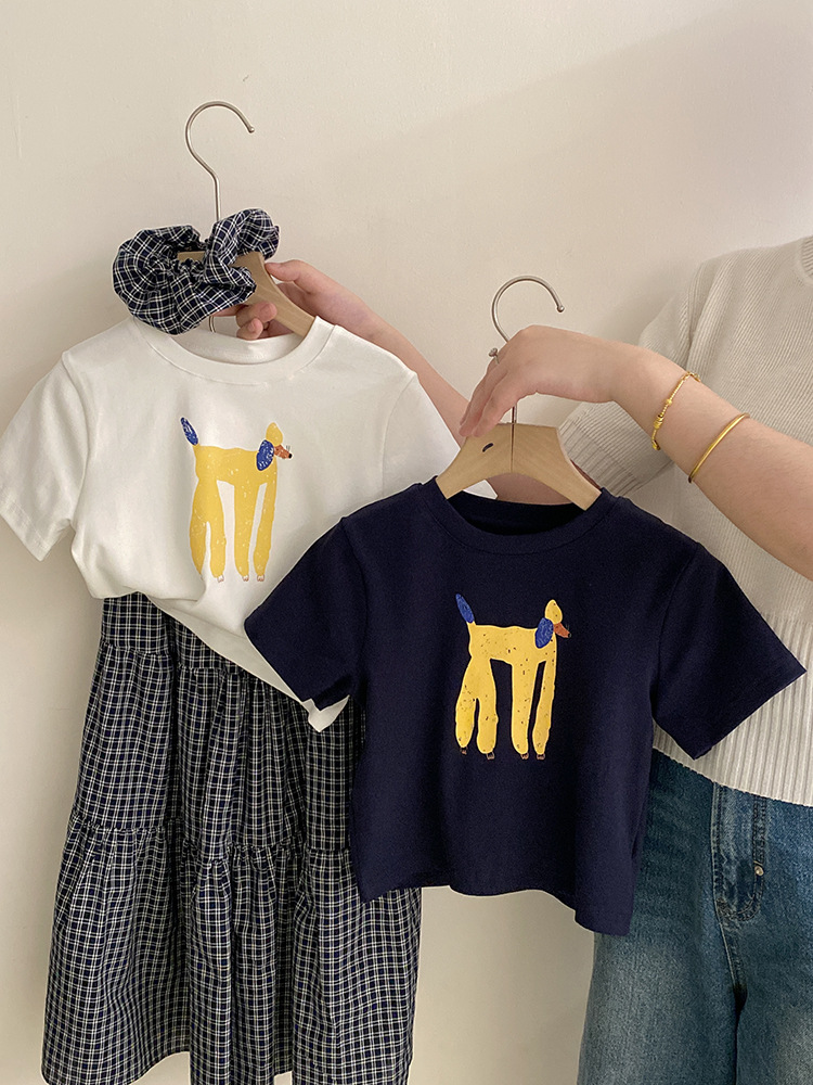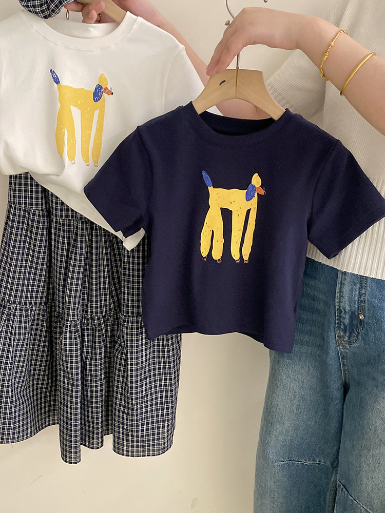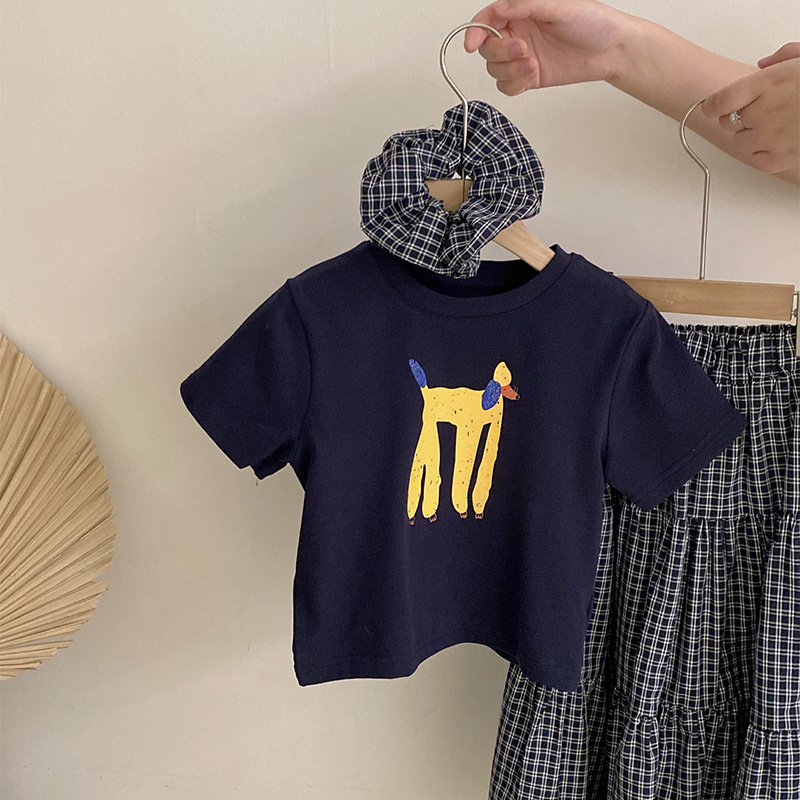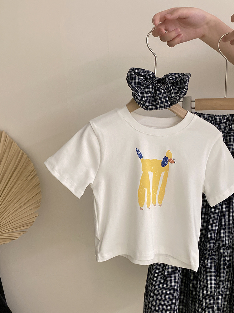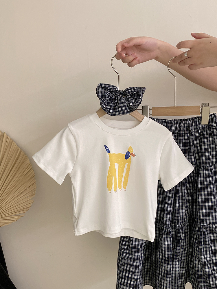 여자 한국식 여름 만화 인쇄 라운드 넥 반팔 티셔츠 여자 2025 올 매치 체크 무늬 투피스 유행 스커트스토어 가기