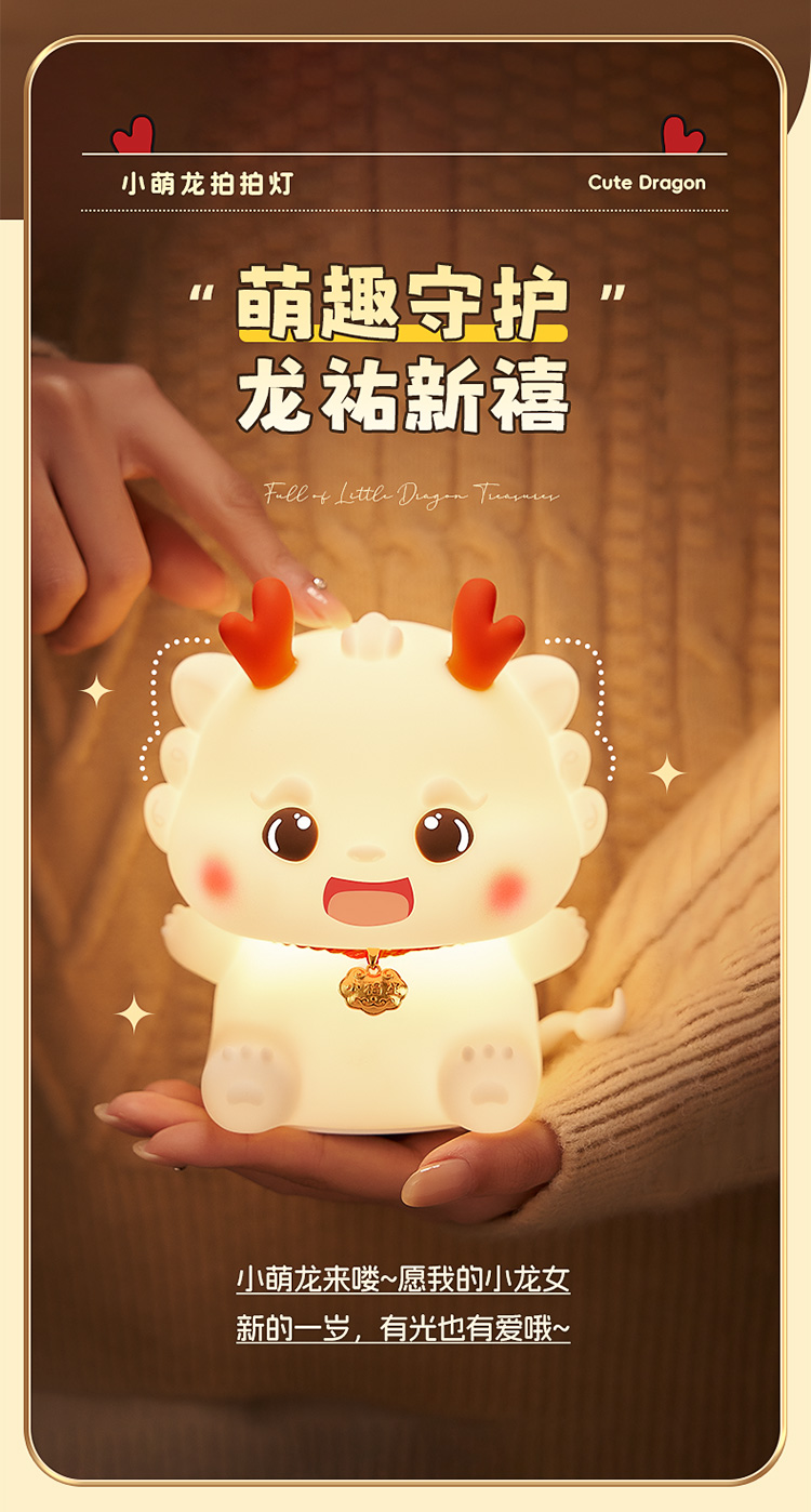 드래곤 베이비 나이트 인터넷 축하 폭발 박수 램프 만화 실리콘 장식품 간호 고급 감각 분위기 램프 테이블 램프와 수면