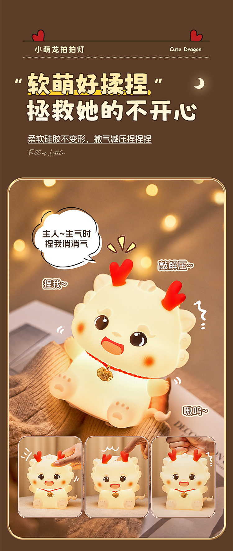 드래곤 베이비 나이트 인터넷 축하 폭발 박수 램프 만화 실리콘 장식품 간호 고급 감각 분위기 램프 테이블 램프와 수면스토어 가기