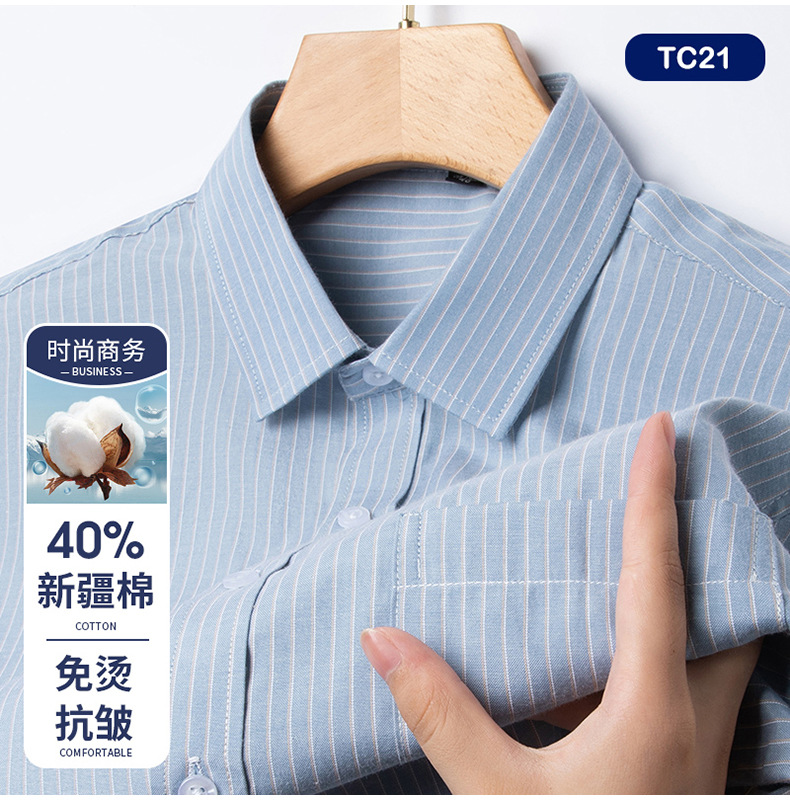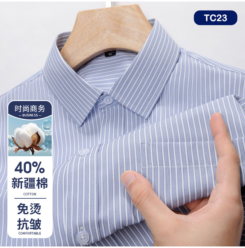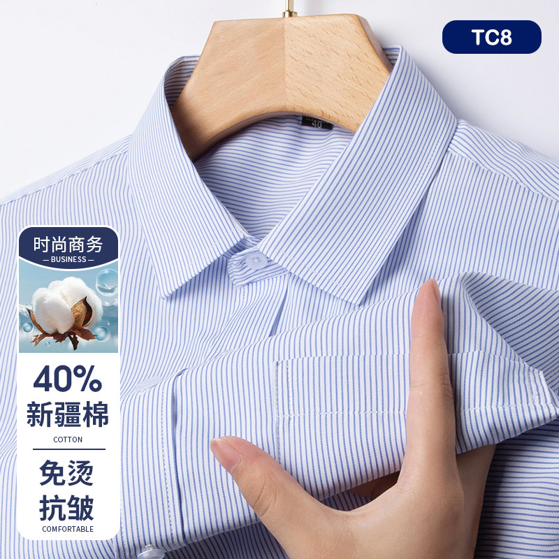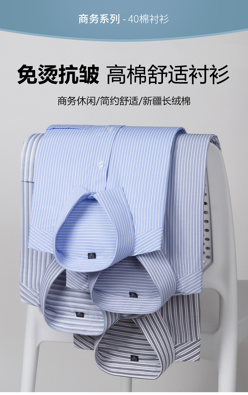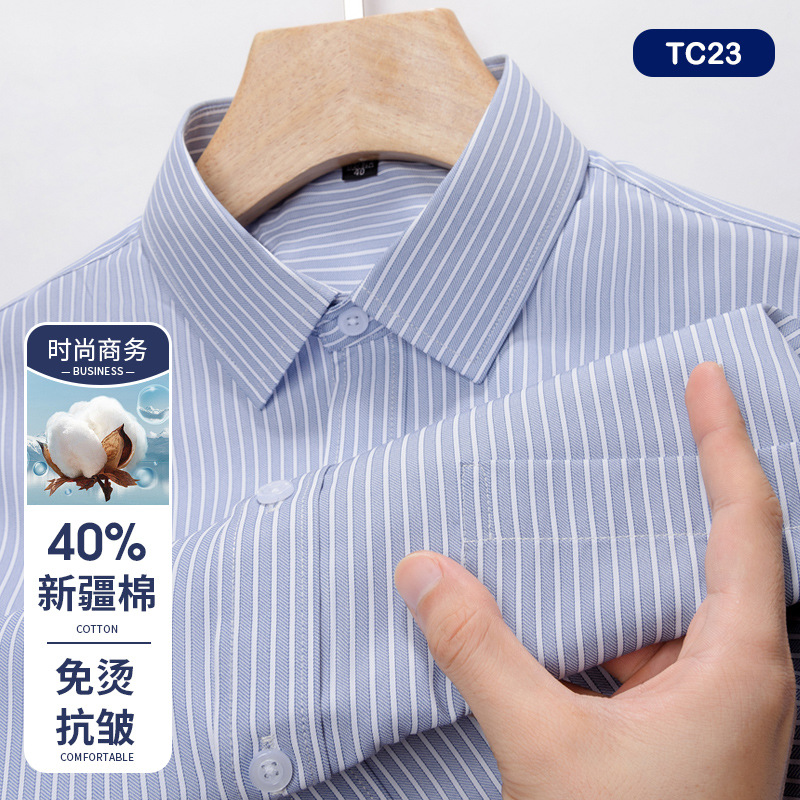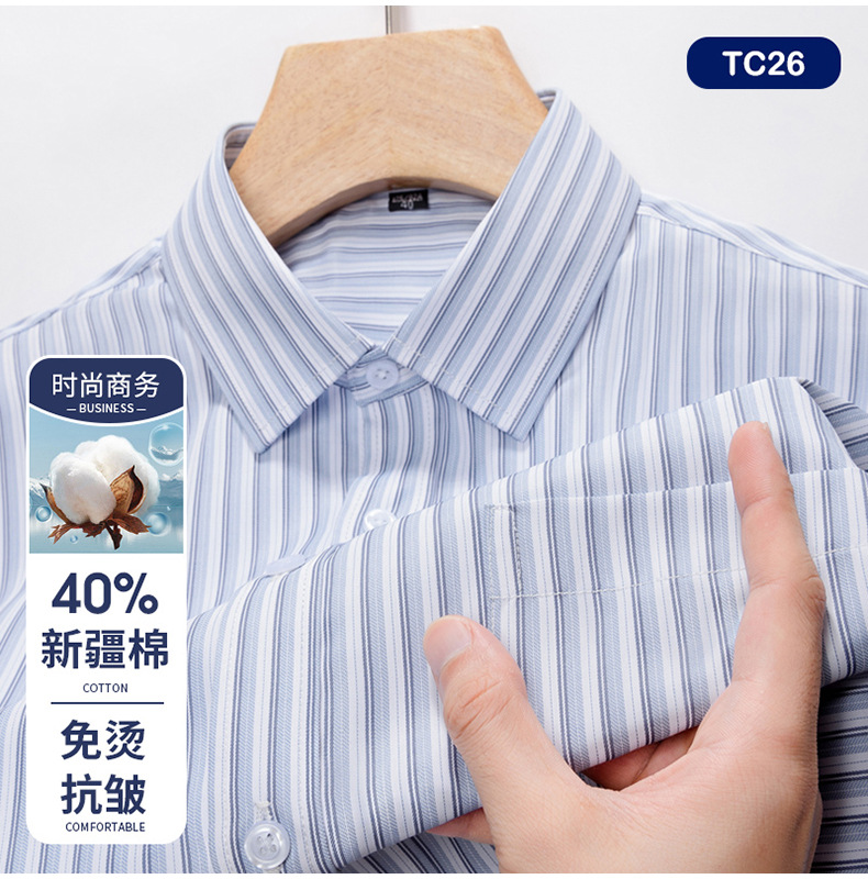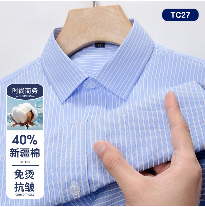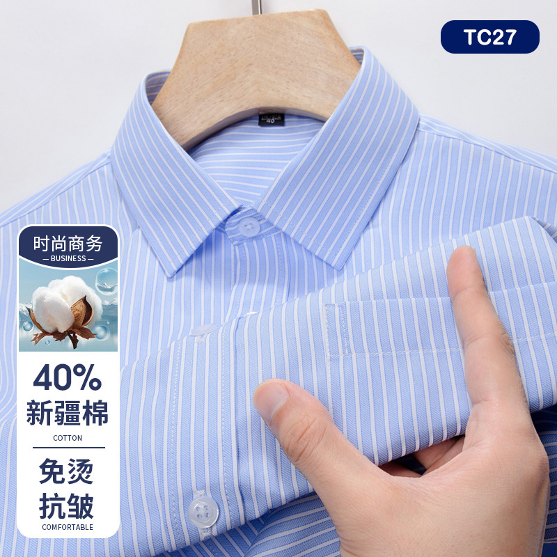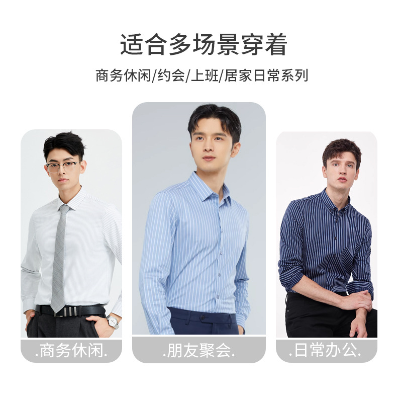 남성용 긴팔 블루 스트라이프 셔츠, 노아이론, 주름 방지, 비즈니스 캐주얼 셔츠, 재킷, 트렌디하고 관리가 쉬운 고급형스토어 가기